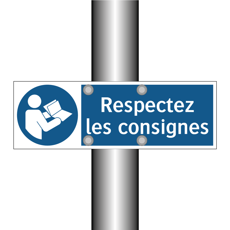 Panneau d'obligation avec le texte : "Respectez les consignes"