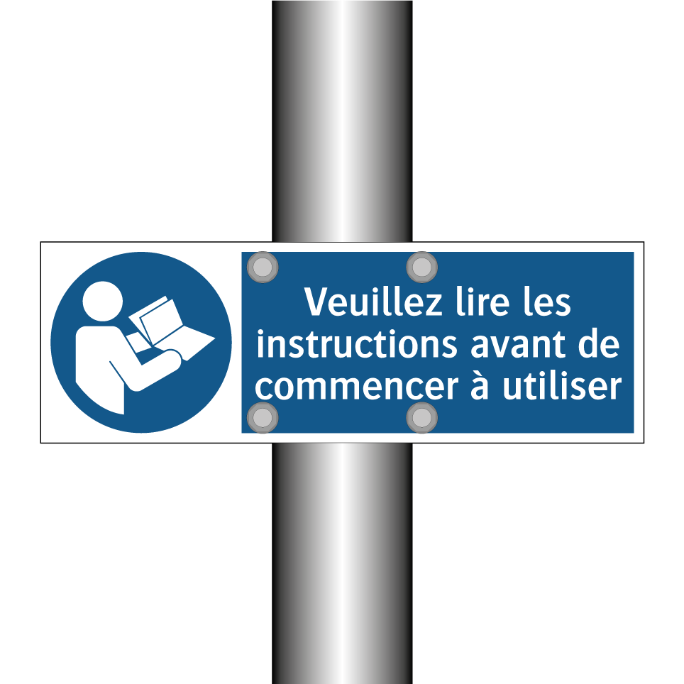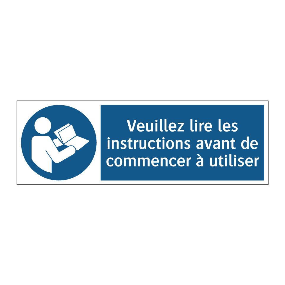 Panneau d'obligation avec le texte : "Veuillez lire les instructions avant de commencer à utiliser"