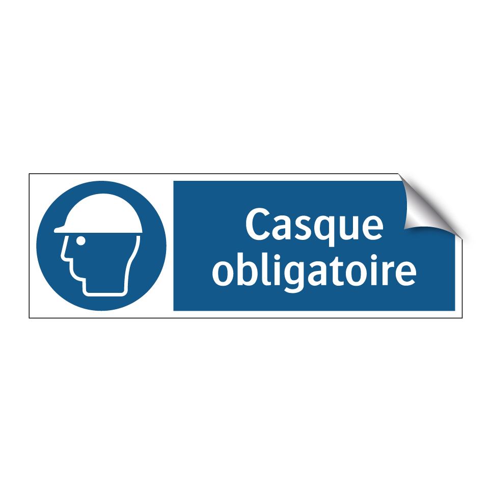 Panneau d'obligation avec le texte : "Casque obligatoire"