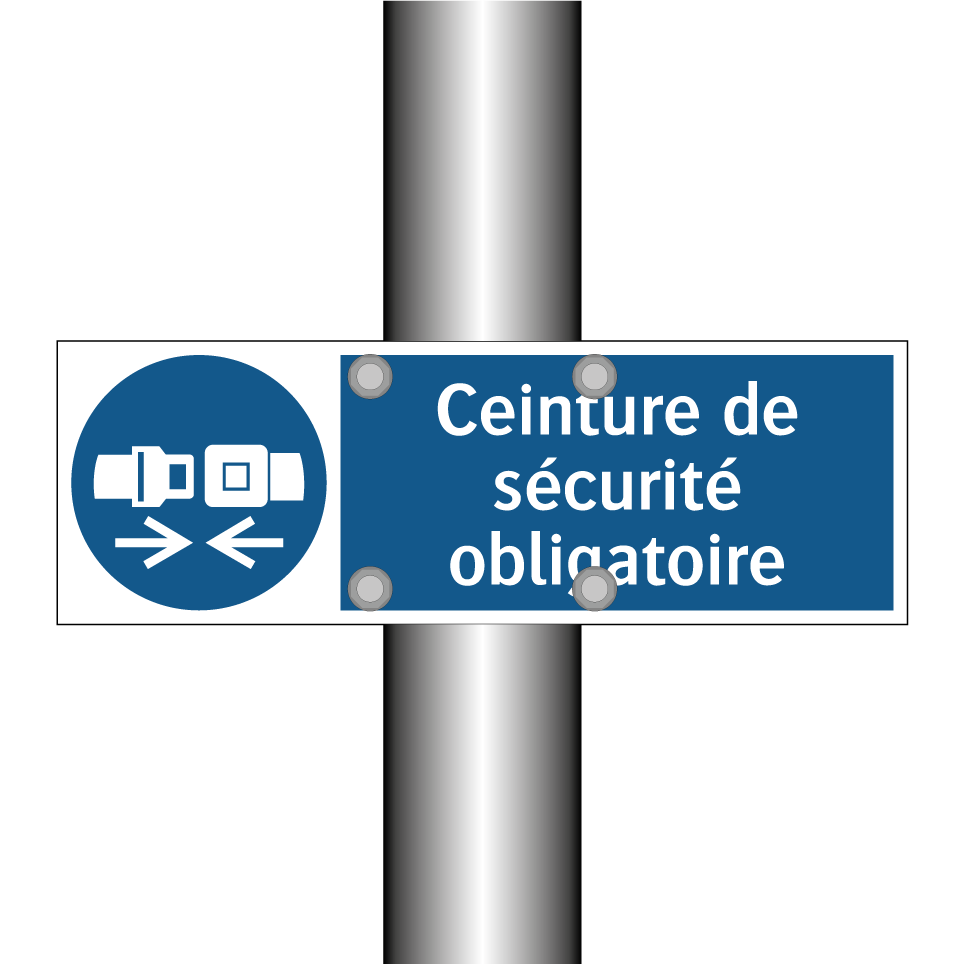 Ce panneau d'obligation est essentiel pour garantir la sécurité dans divers environnements. Il est idéal pour être installé dans des parkings, des garages ou à l'entrée de bâtiments où le port de la ceinture de sécurité est impératif. Grâce à sa couleur bleue et son texte blanc, il attire immédiatement l'attention et rappelle aux conducteurs et passagers l'importance de s'attacher. Ce type de signalisation est particulièrement utile dans les zones où la sécurité routière est une priorité, comme les centres de formation à la conduite ou les entreprises de transport. En plaçant ce panneau à des endroits stratégiques, vous contribuez à renforcer la sécurité et à prévenir les accidents.