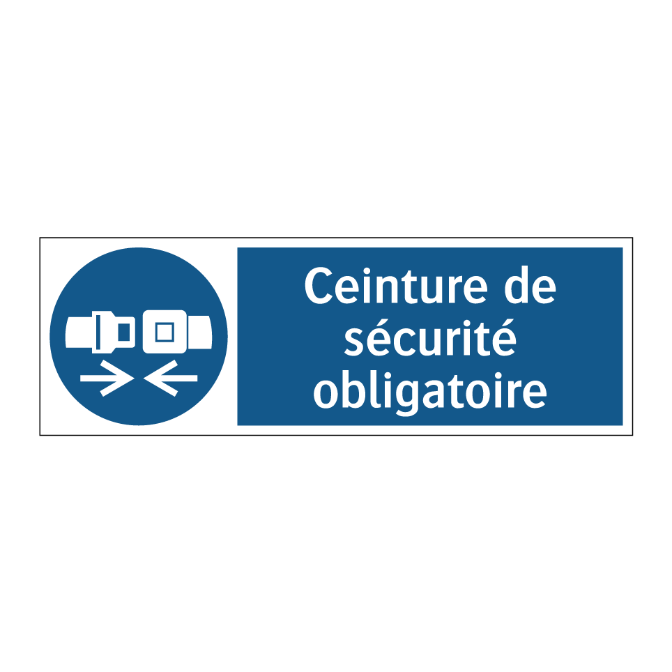 Panneau d'obligation avec le texte : "Ceinture de sécurité obligatoire"