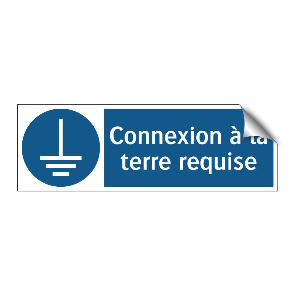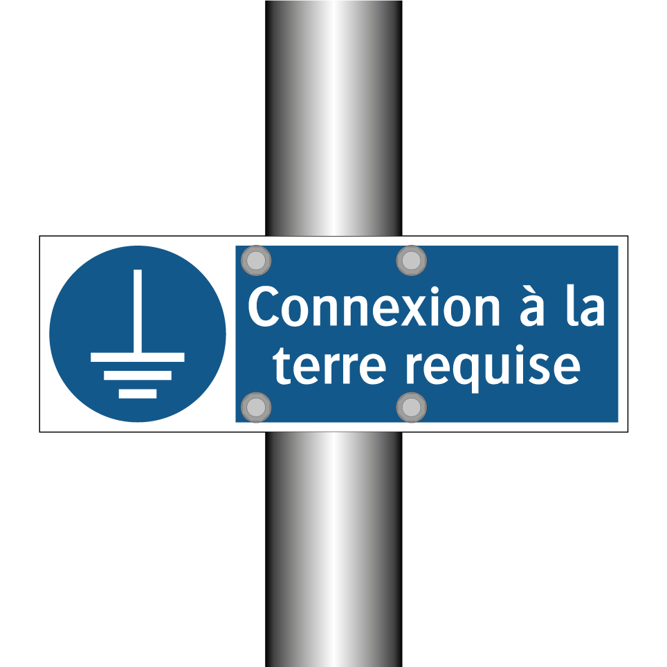Panneau d'obligation avec le texte : "Connexion à la terre requise"