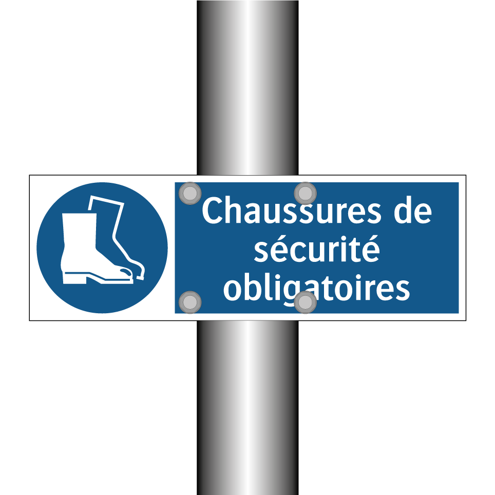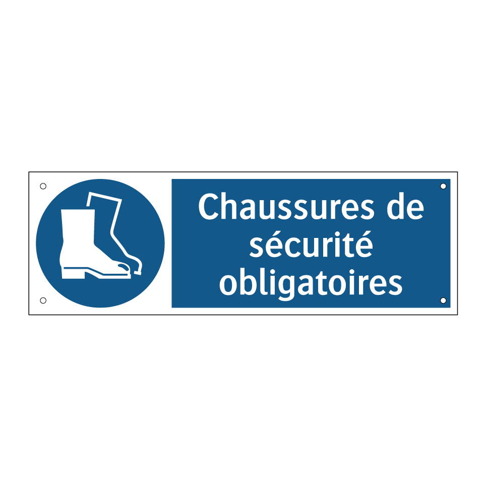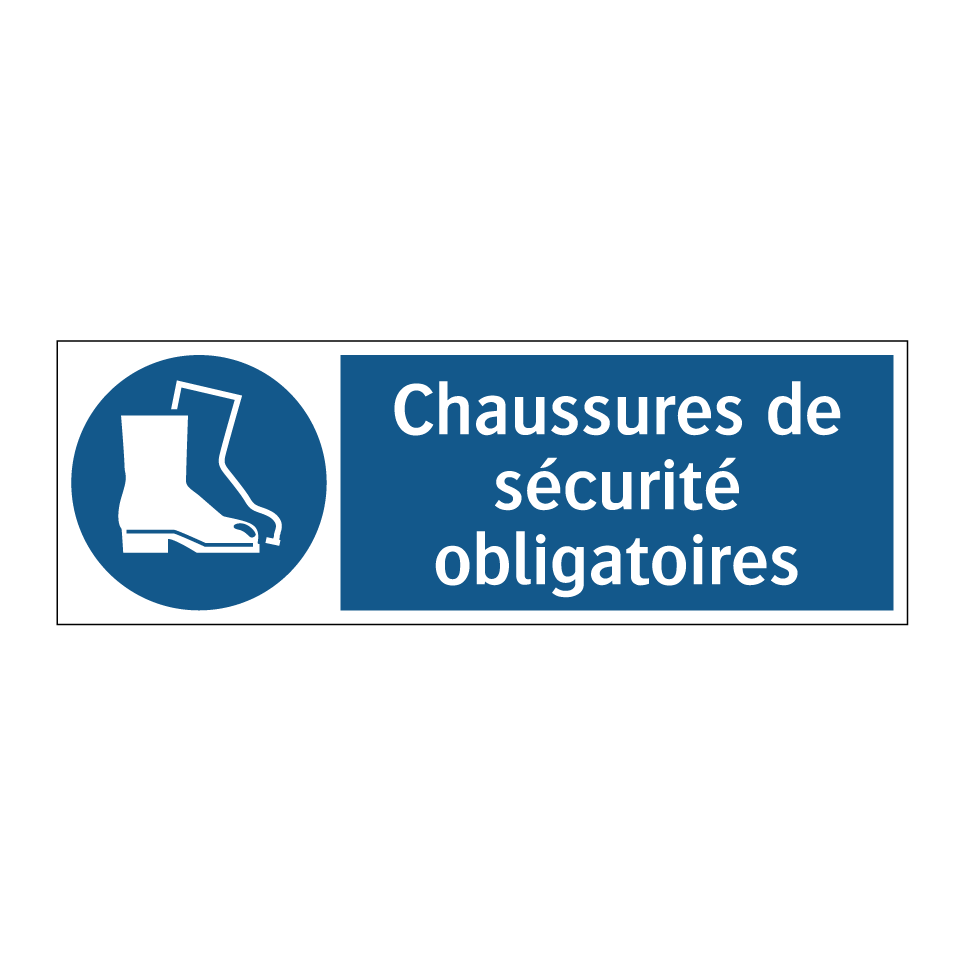 Panneau d'obligation avec le texte : "Chaussures de sécurité obligatoires"