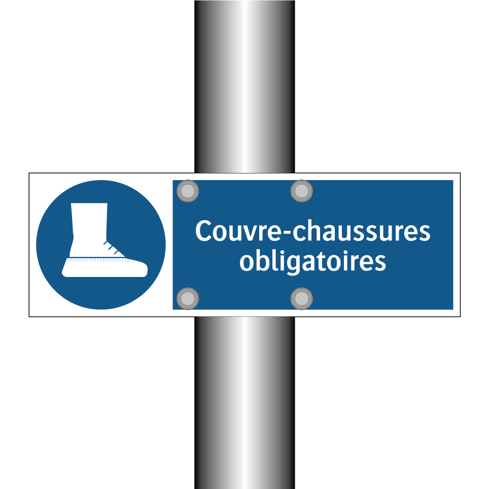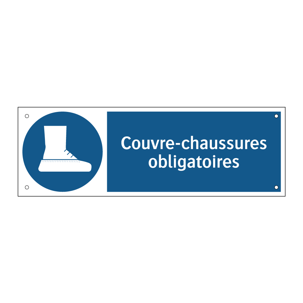 Panneau d'obligation avec le texte : "Couvre-chaussures obligatoires"