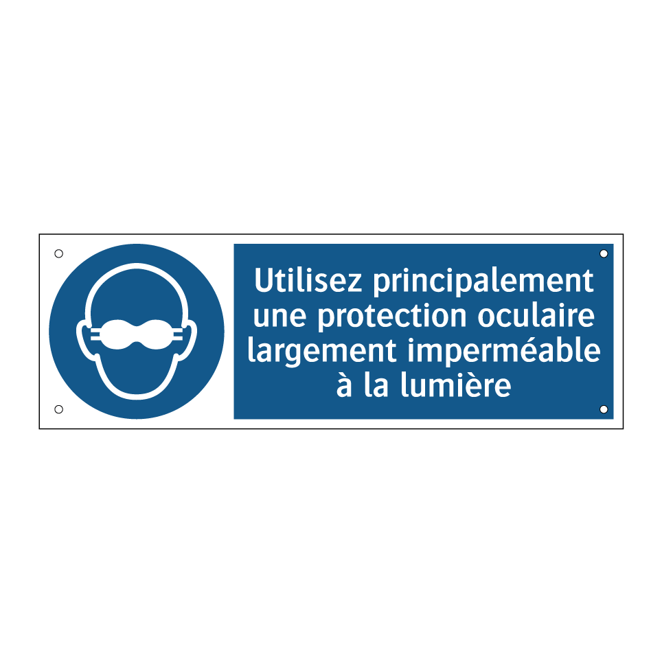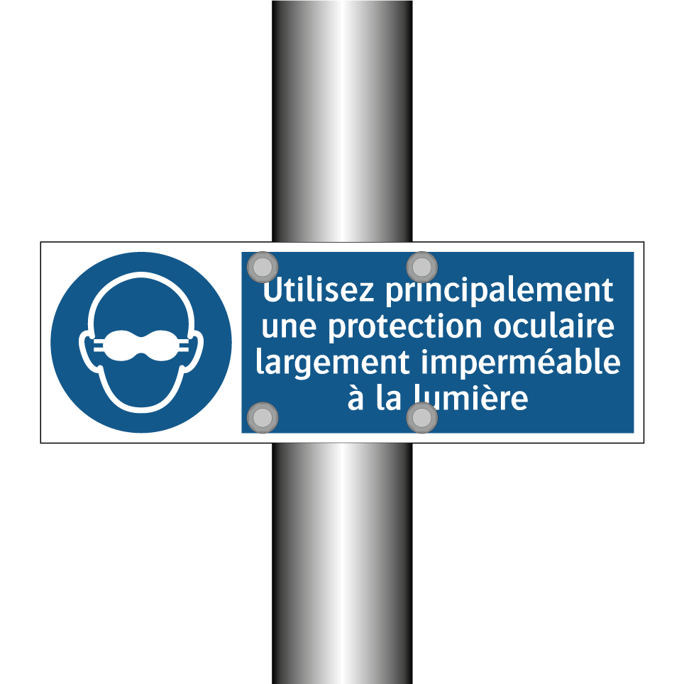Panneau d'obligation avec le texte : "Utilisez principalement une protection oculaire largement imperméable à la lumière"