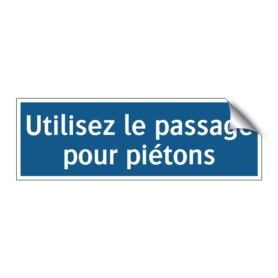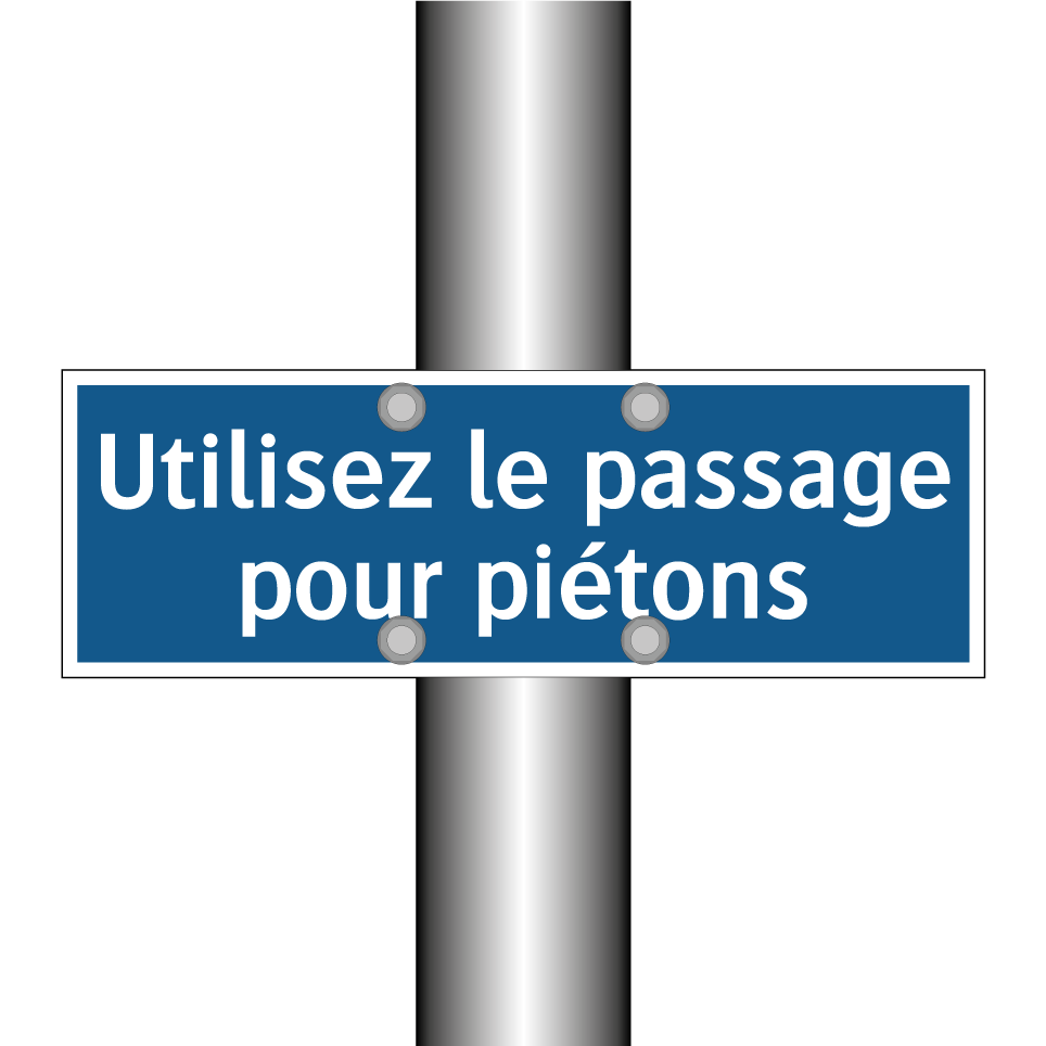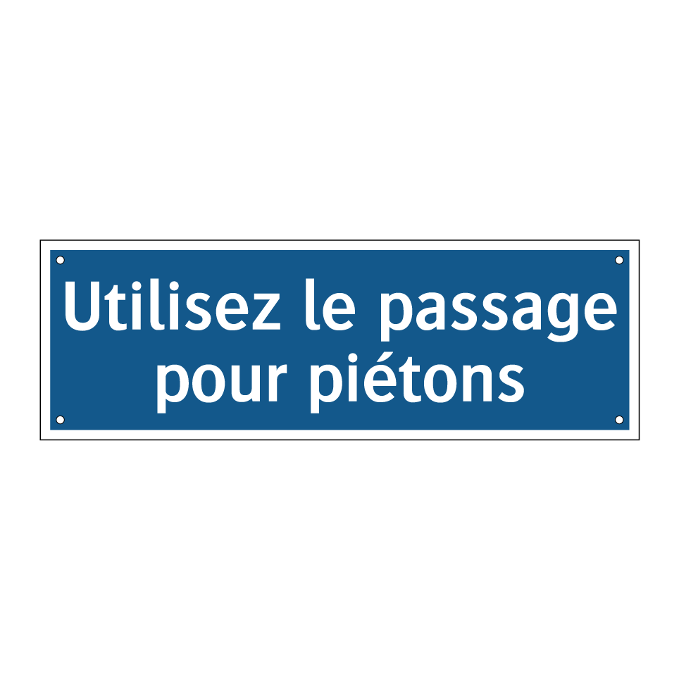 Panneau d'obligation avec le texte : "Utilisez le passage pour piétons"
