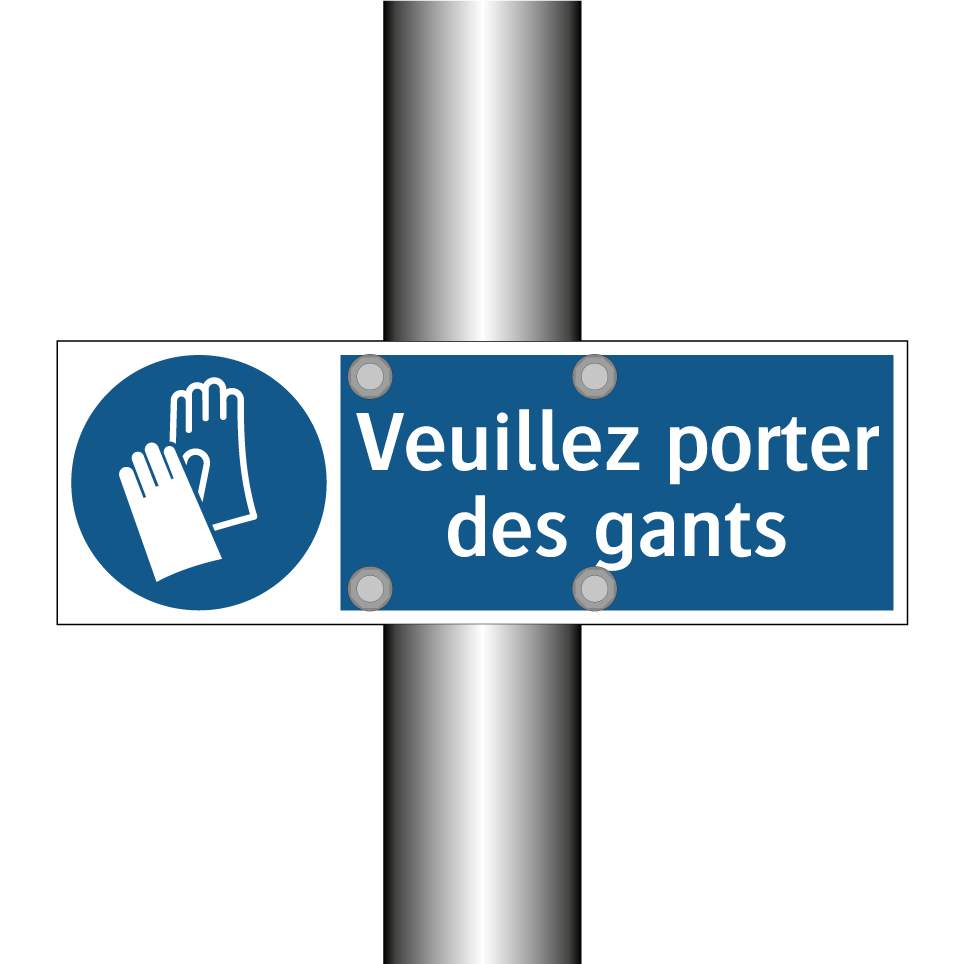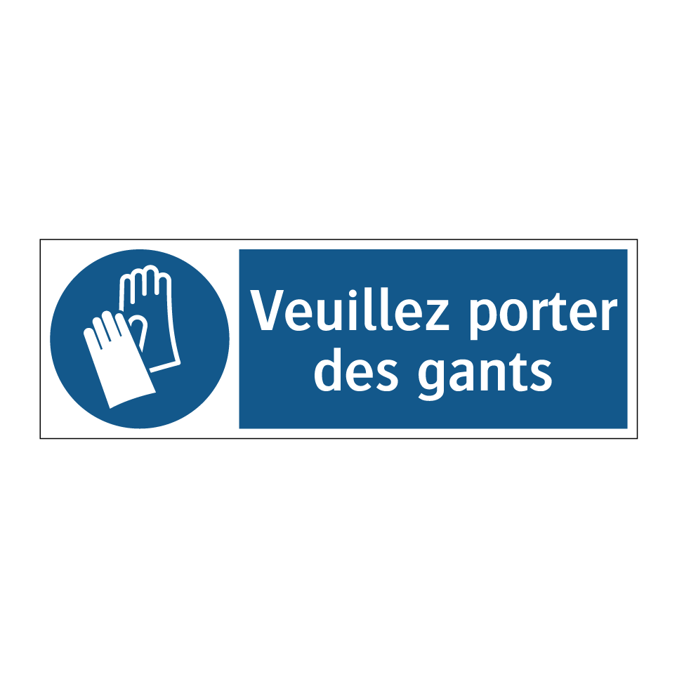 Panneau d'obligation avec le texte : "Veuillez porter des gants"