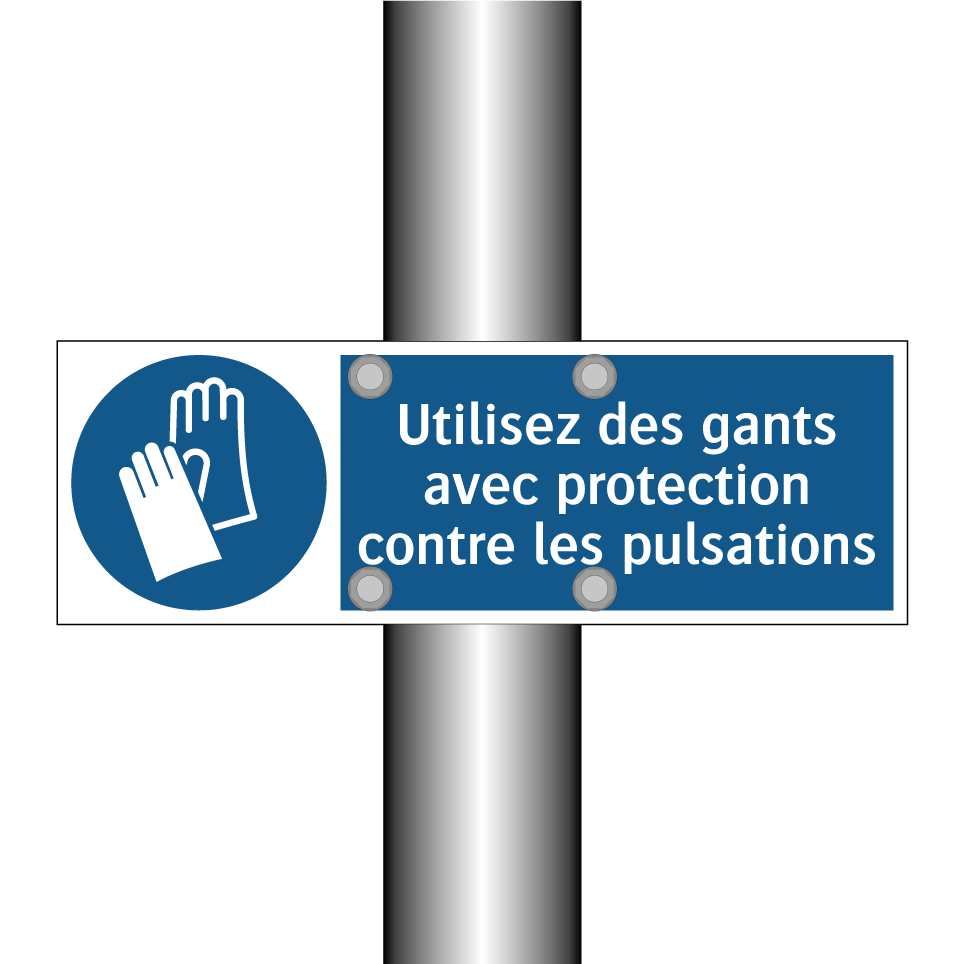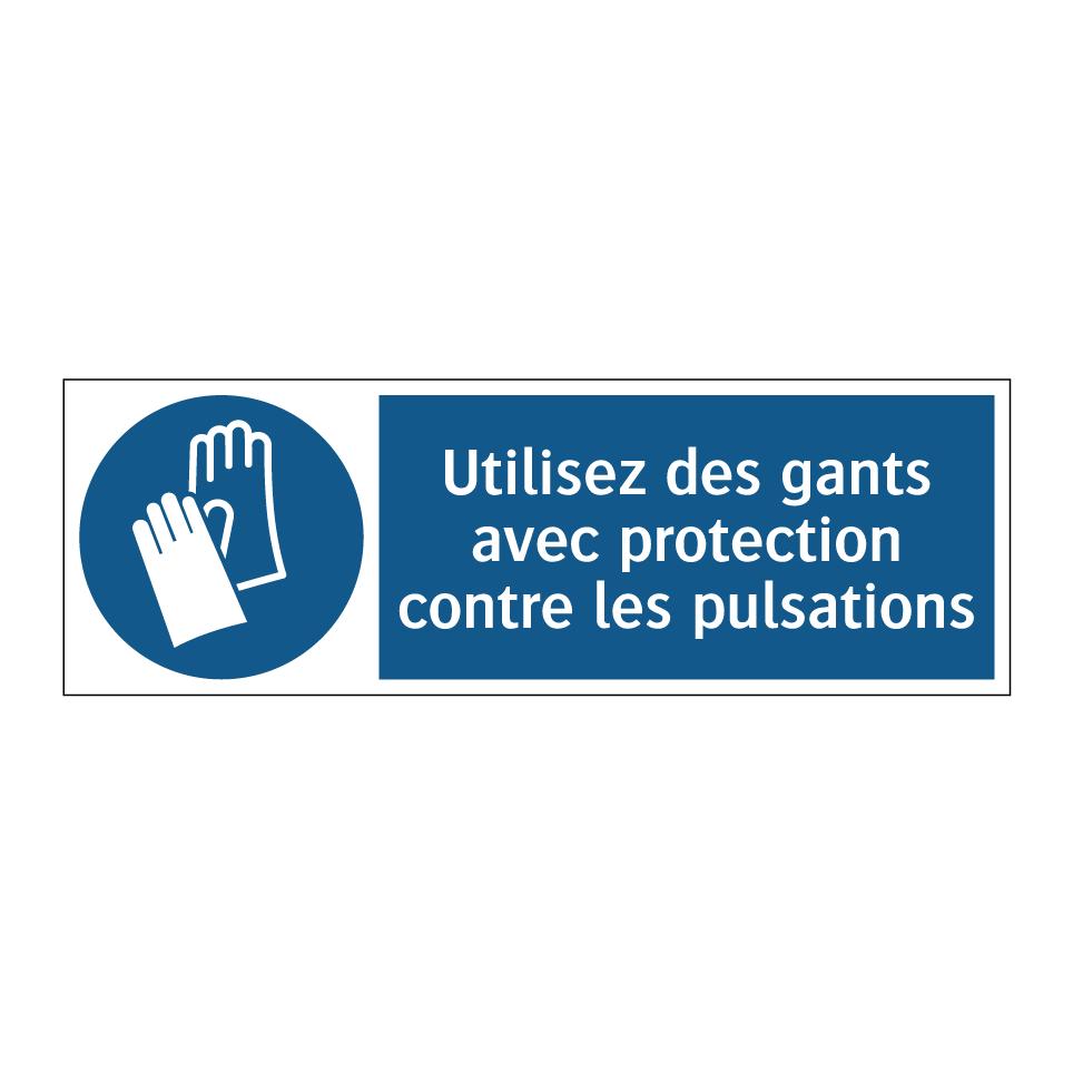 Panneau d'obligation avec le texte : "Utilisez des gants avec protection contre les pulsations"