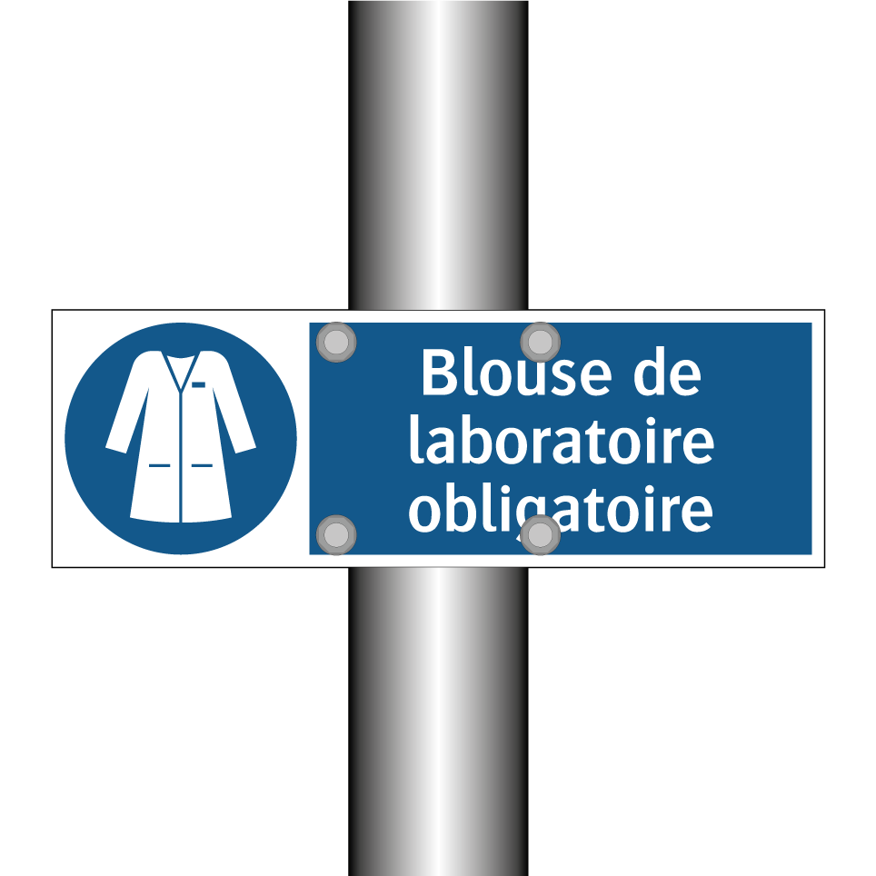 Panneau d'obligation avec le texte : "Blouse de laboratoire obligatoire"
