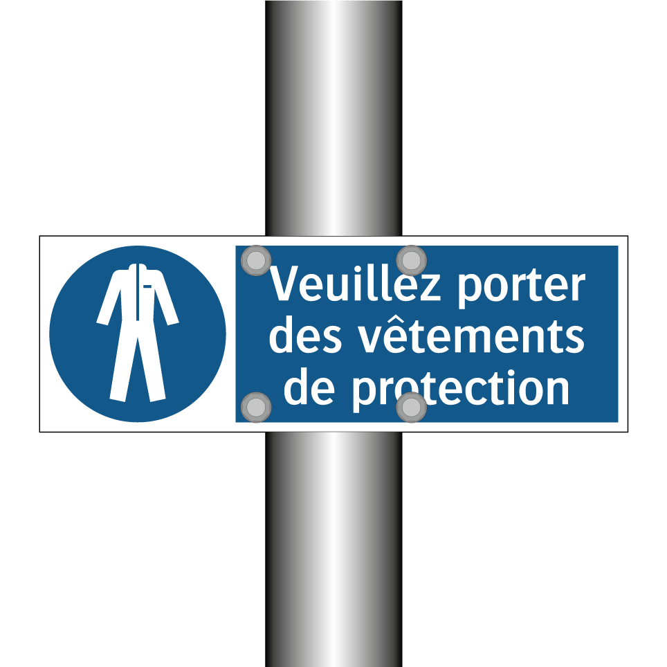 Ce panneau d'obligation est essentiel pour garantir la sécurité sur le lieu de travail. Conçu pour être placé dans des environnements industriels, des chantiers de construction ou des laboratoires, il rappelle aux employés l'importance de porter des vêtements de protection appropriés. Avec son fond bleu distinctif et son texte blanc clair, il attire immédiatement l'attention et communique efficacement le message de sécurité. Idéal pour être installé à l'entrée des zones à risque ou à proximité des équipements dangereux, ce panneau assure que les consignes de sécurité sont respectées. En intégrant ce panneau, vous contribuez à créer un environnement de travail plus sûr et conforme aux normes de sécurité.