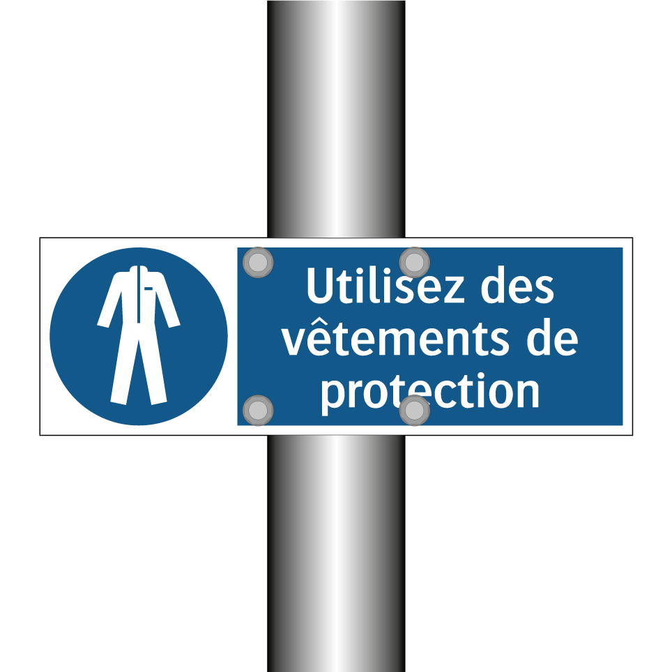 Ce panneau d'obligation est essentiel pour garantir la sécurité sur le lieu de travail. Il est idéal pour les environnements industriels, les chantiers de construction ou les laboratoires où le port de vêtements de protection est impératif. Grâce à sa couleur bleue et son texte blanc, il attire immédiatement l'attention et rappelle aux employés l'importance de se protéger adéquatement. Ce panneau peut être installé à l'entrée des zones à risque, dans les vestiaires ou à proximité des équipements de protection individuelle. En utilisant ce panneau, vous assurez une communication claire et efficace des consignes de sécurité, contribuant ainsi à prévenir les accidents et à maintenir un environnement de travail sûr.