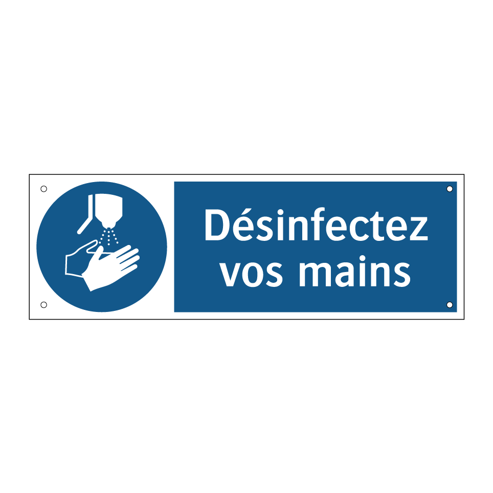 Panneau d'obligation avec le texte : "Désinfectez vos mains"