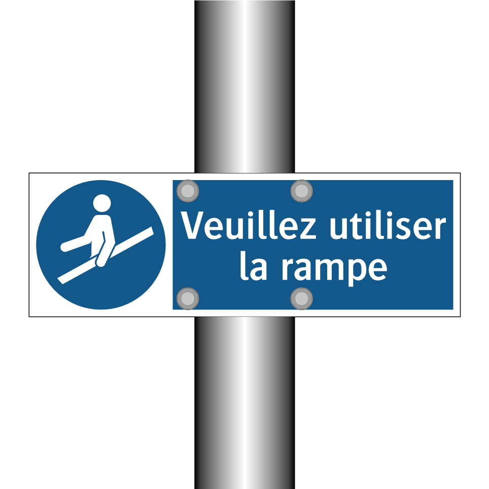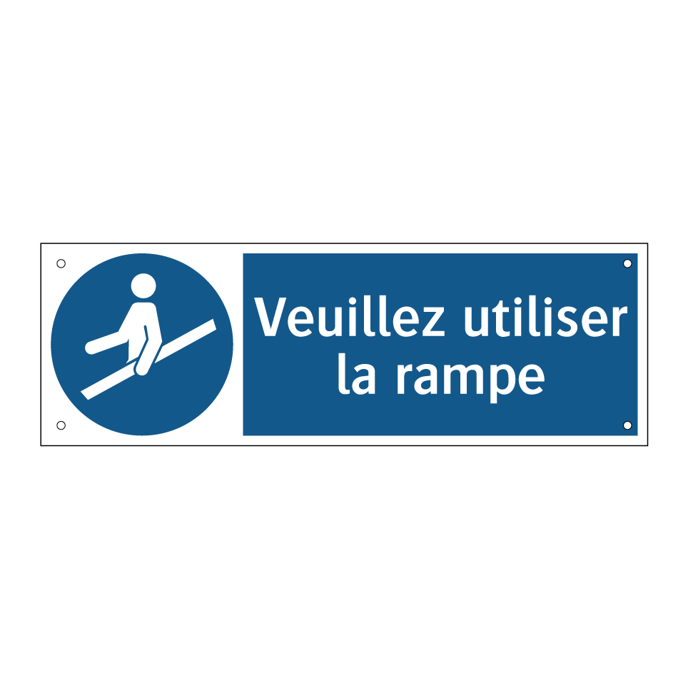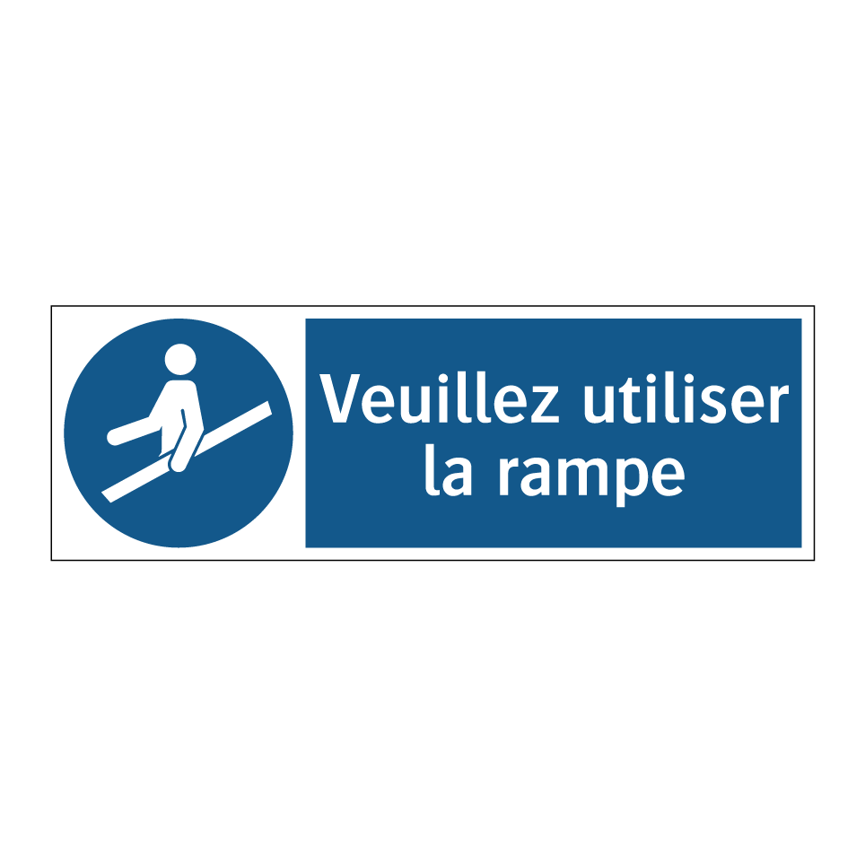 Panneau d'obligation avec le texte : "Veuillez utiliser la rampe"
