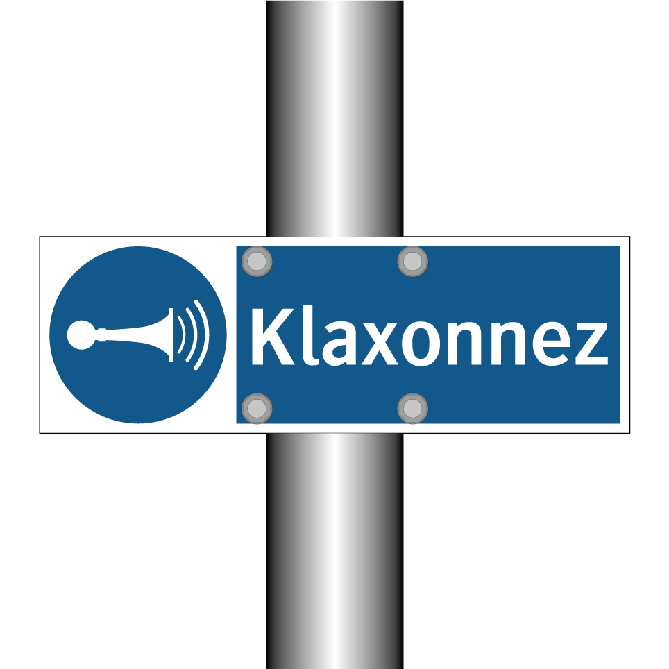 Panneau d'obligation avec le texte : "Klaxonnez"