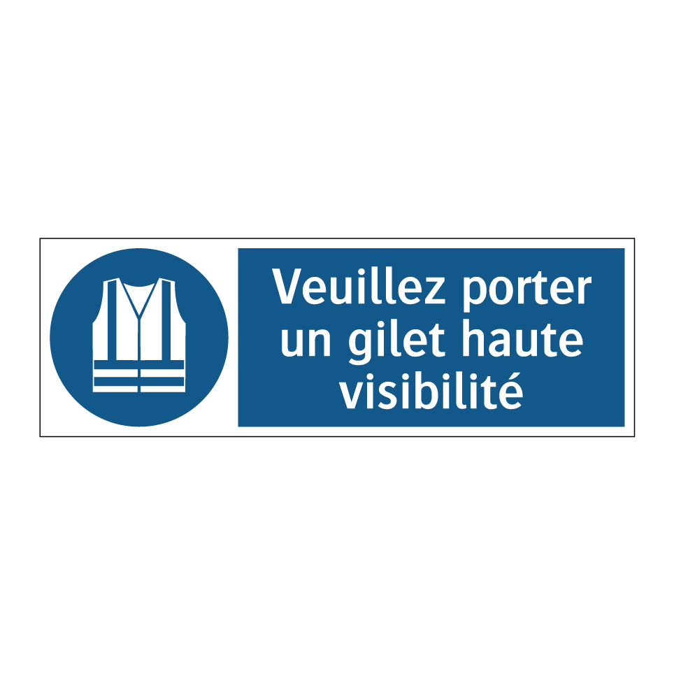 Panneau d'obligation avec le texte : "Veuillez porter un gilet haute visibilité"