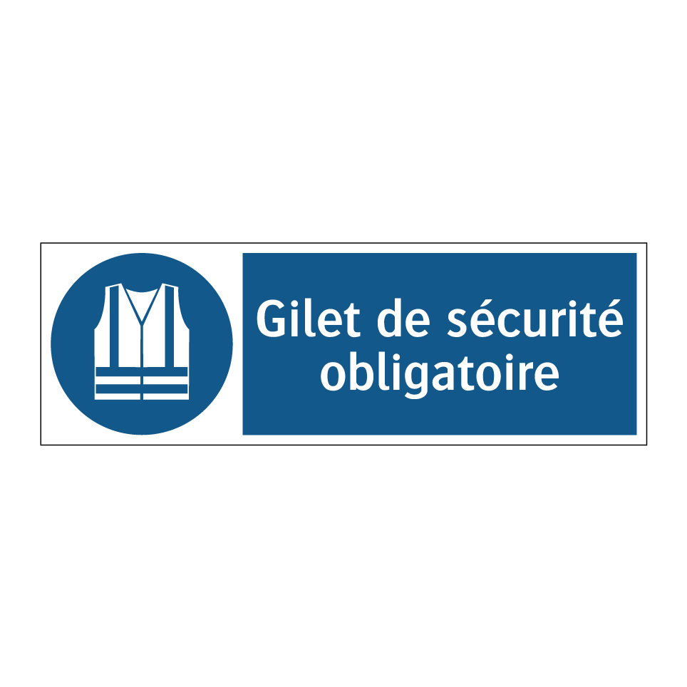 Panneau d'obligation avec le texte : "Gilet de sécurité obligatoire"