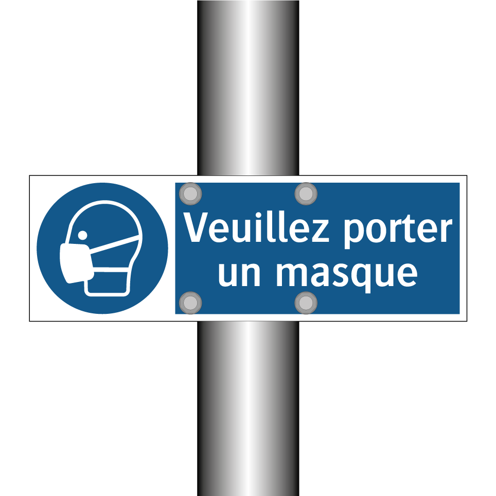 Panneau d'obligation avec le texte : "Veuillez porter un masque."