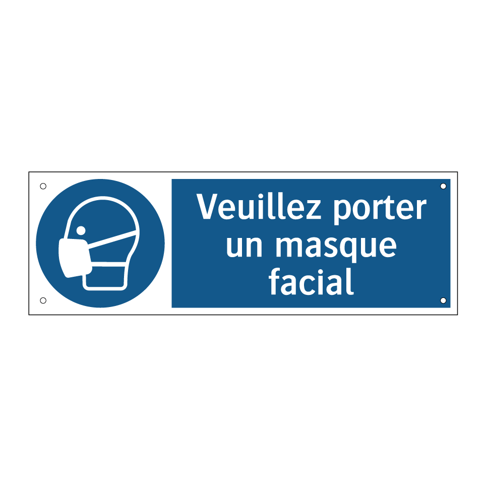 Panneau d'obligation avec le texte : "Veuillez porter un masque facial"