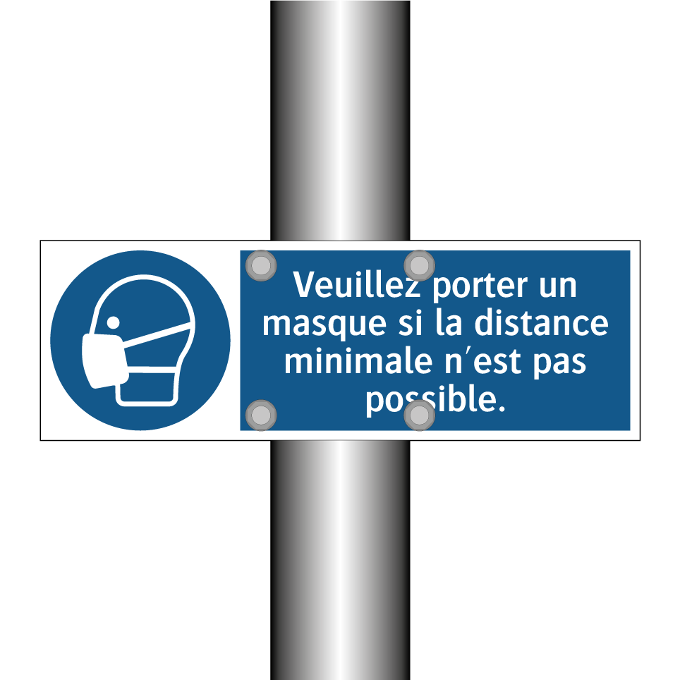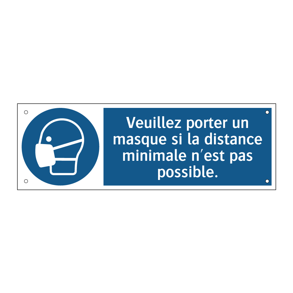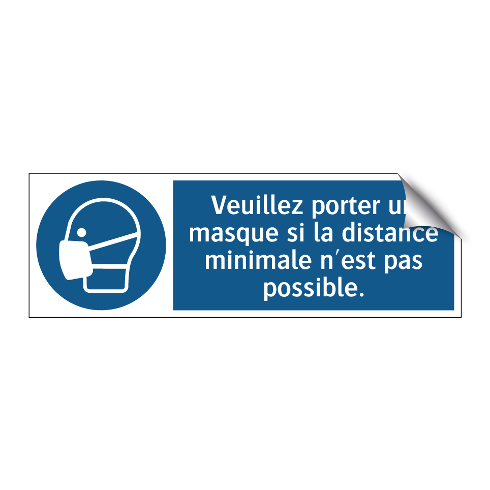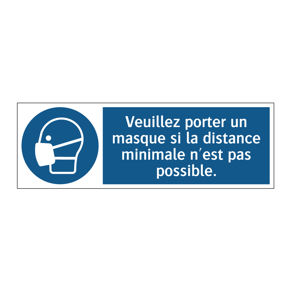 Panneau d'obligation avec le texte : "Veuillez porter un masque si la distance minimale n'est pas possible."