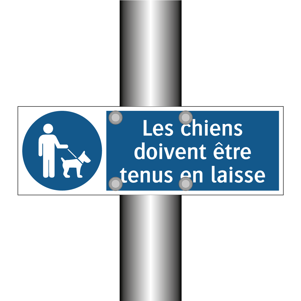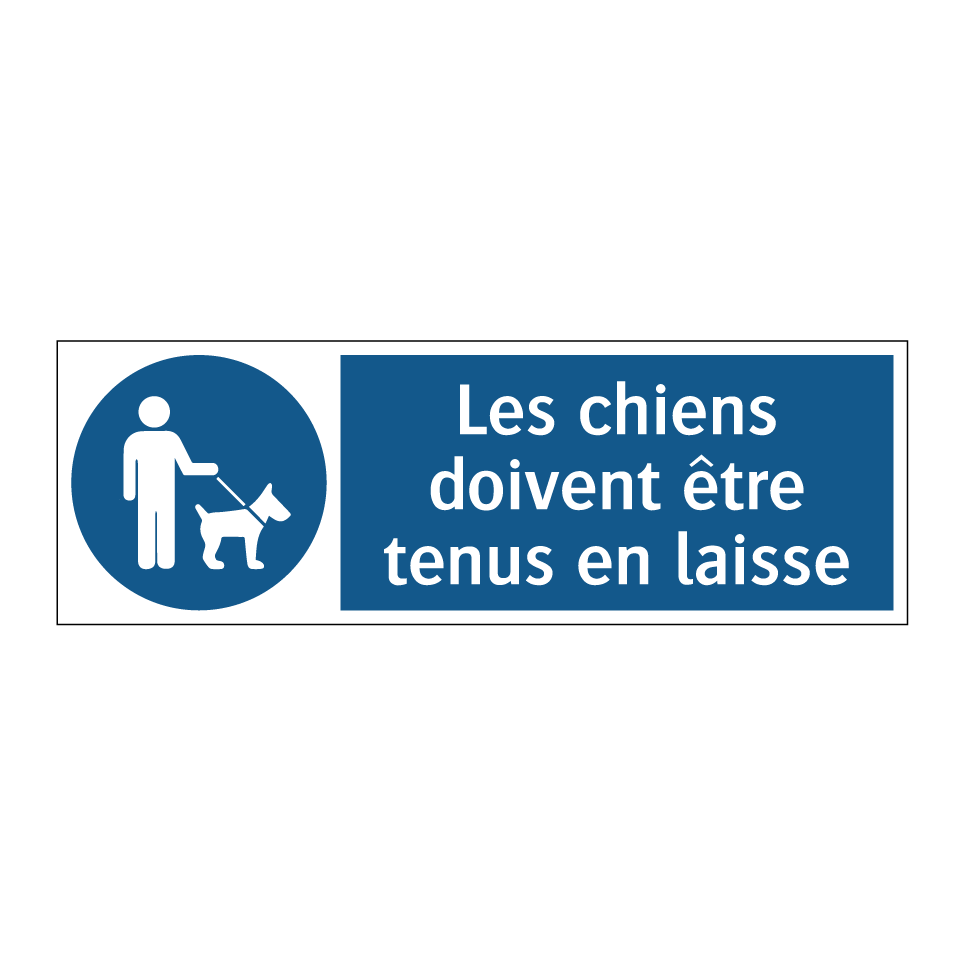 Ce panneau d'obligation est essentiel pour garantir la sécurité et le respect des règles dans les espaces publics. Idéal pour les parcs, les jardins publics ou les zones résidentielles, il rappelle aux propriétaires de chiens l'importance de garder leurs animaux en laisse. En installant ce panneau, vous contribuez à prévenir les incidents et à maintenir un environnement harmonieux pour tous les usagers. Sa couleur bleue et son texte blanc assurent une visibilité optimale, tandis que le symbole clair renforce le message. Ce panneau est un outil indispensable pour toute zone où la sécurité et le respect des règles de conduite sont prioritaires.