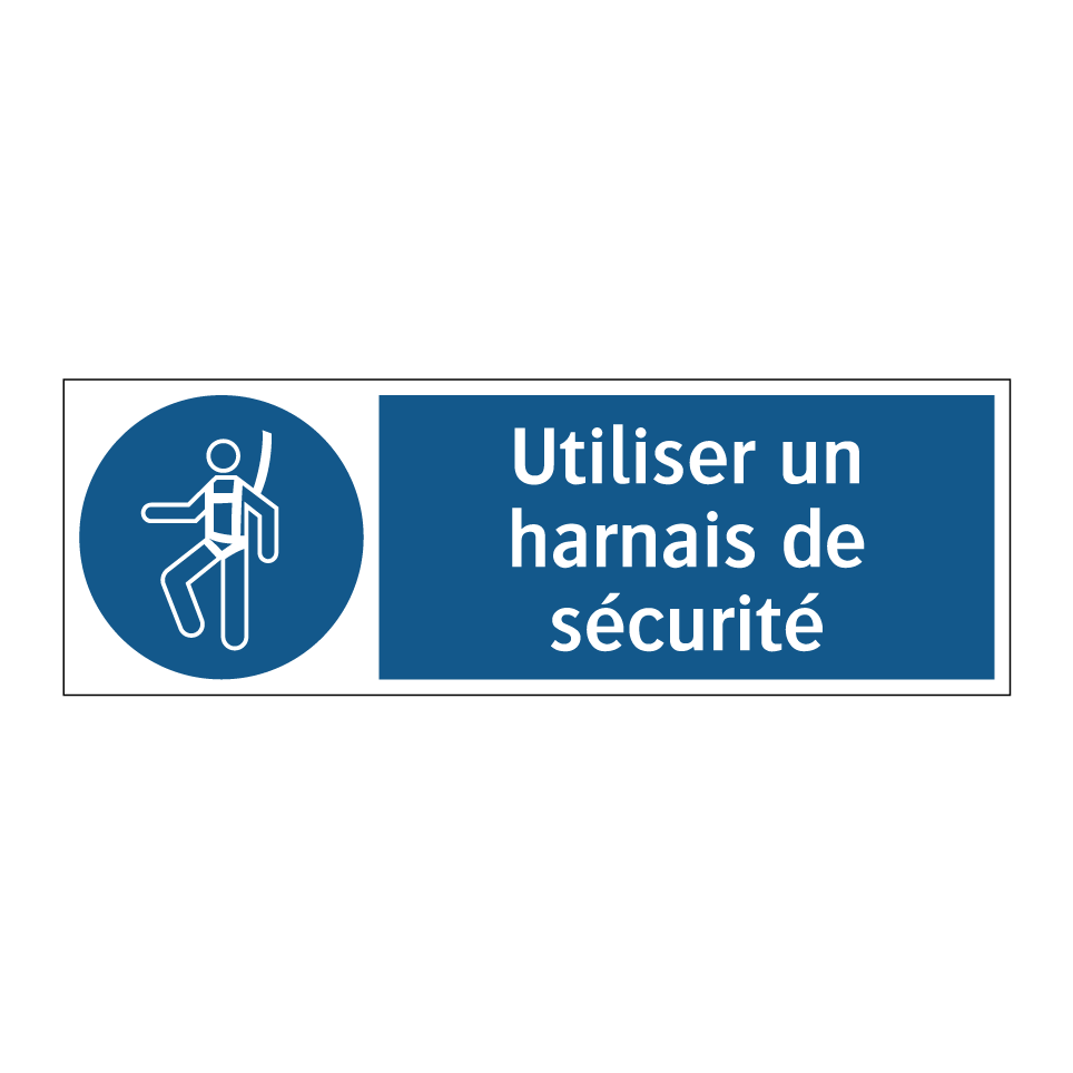 Panneau d'obligation avec le texte : "Utiliser un harnais de sécurité"