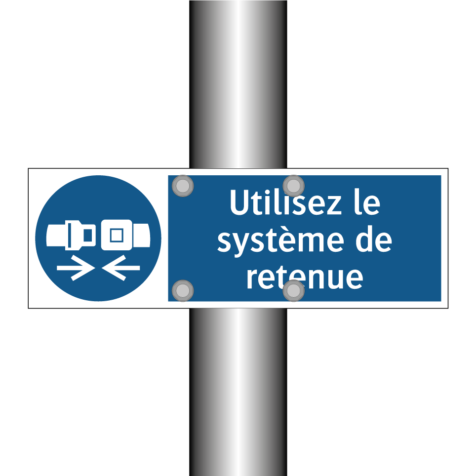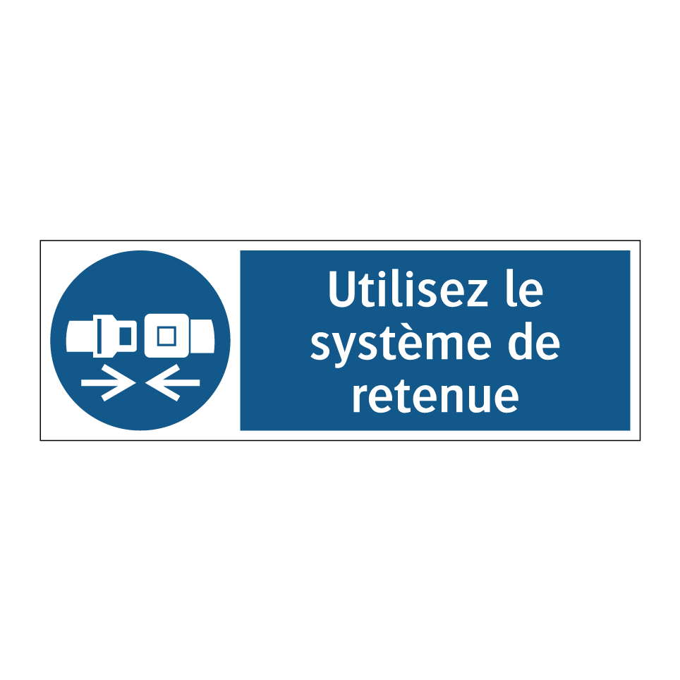 Panneau d'obligation avec le texte : "Utilisez le système de retenue"