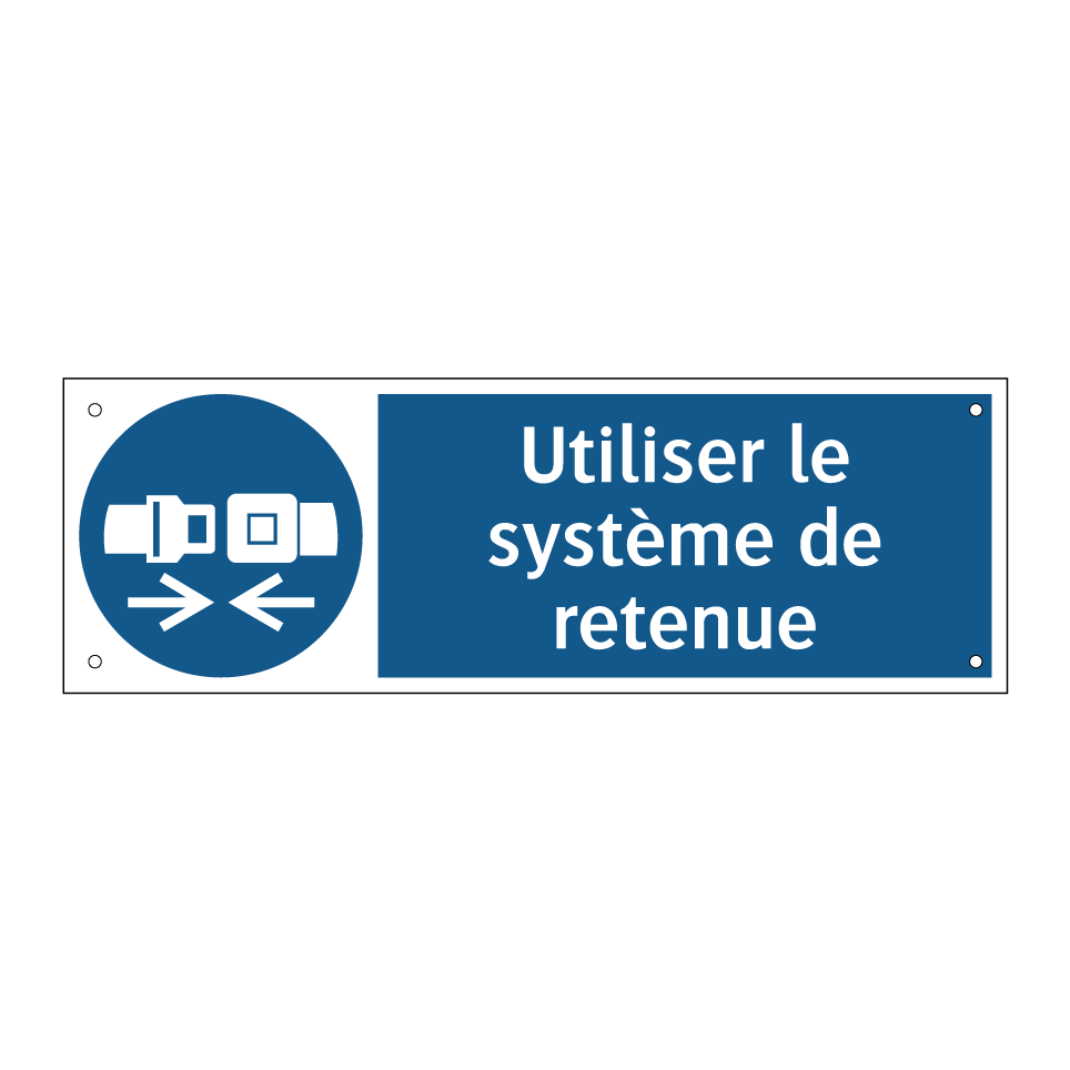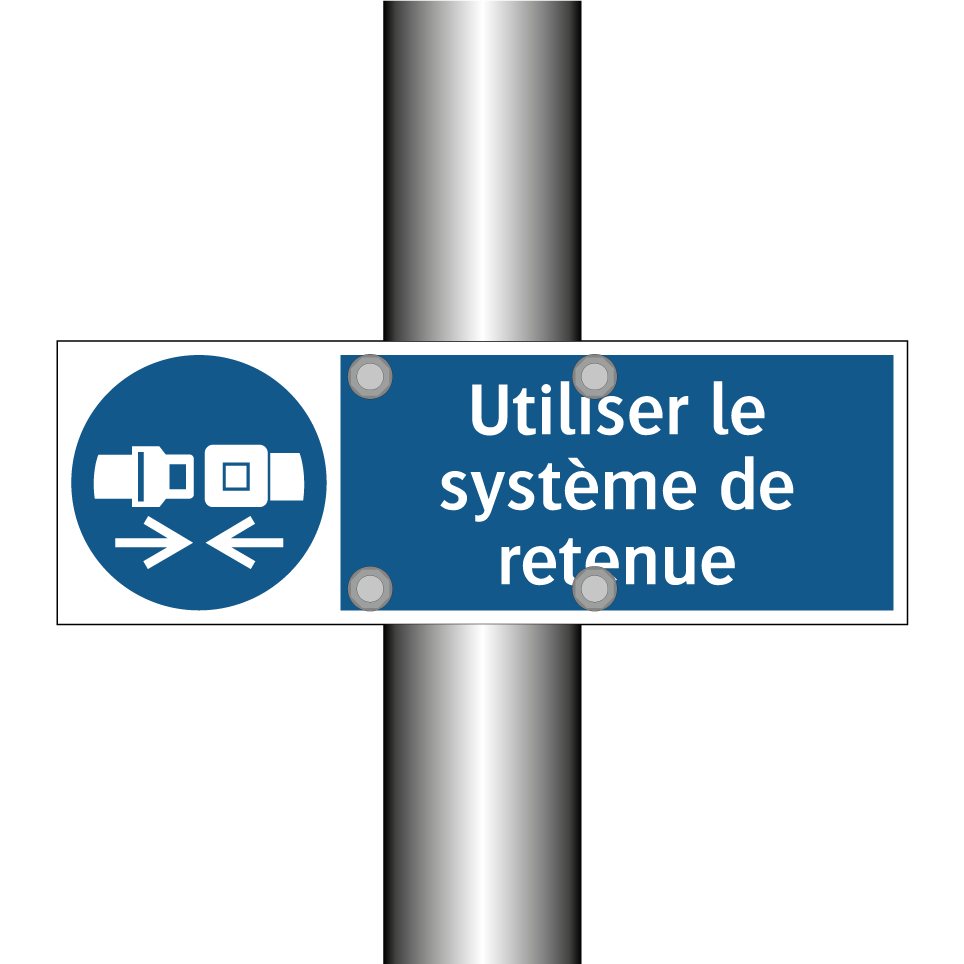 Panneau d'obligation avec le texte : "Utiliser le système de retenue"