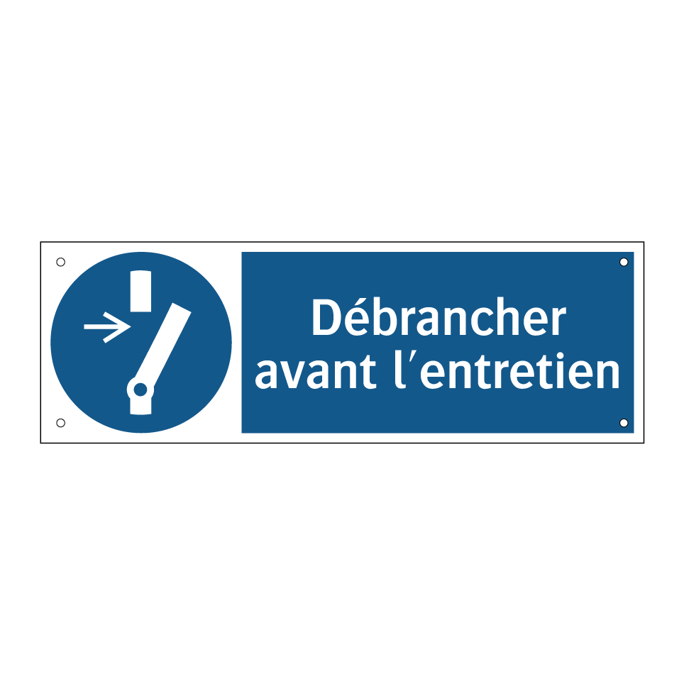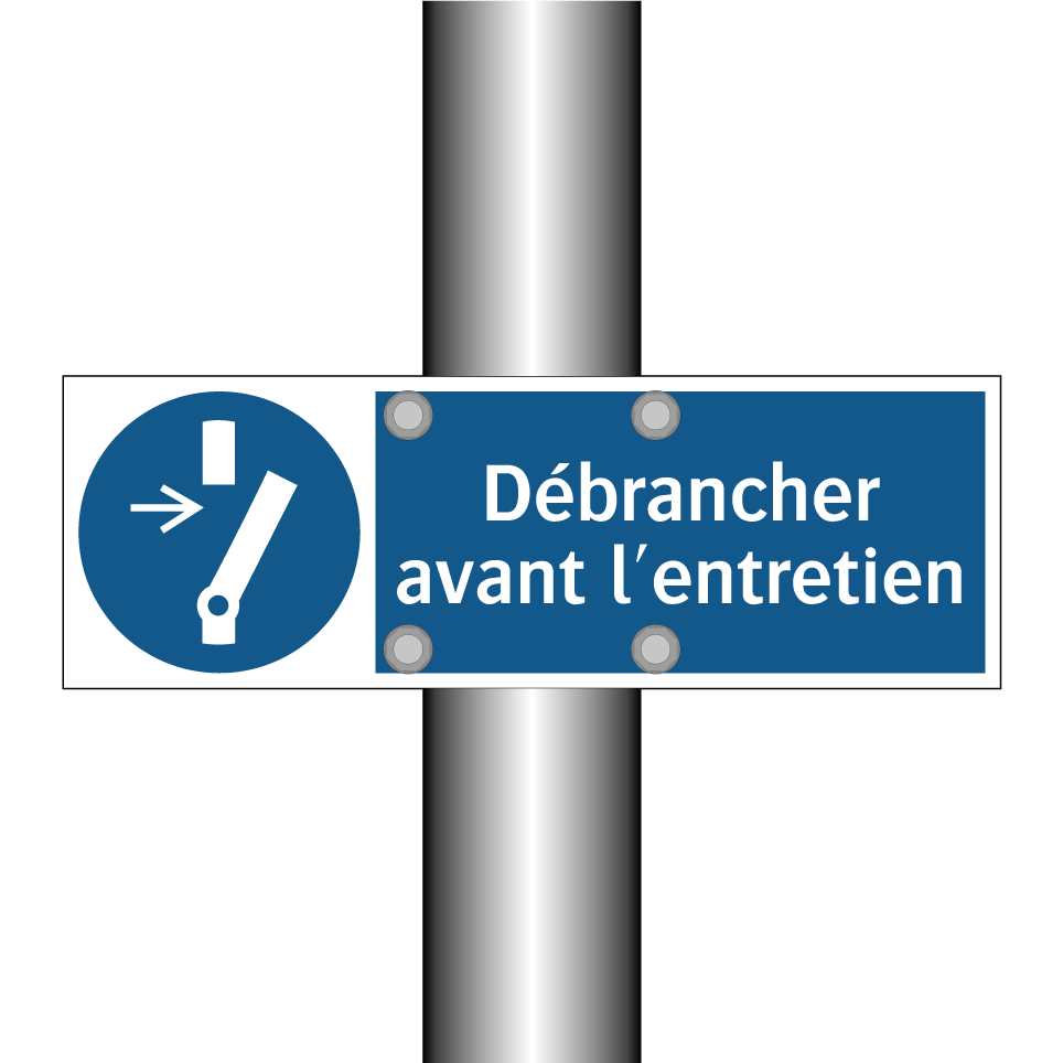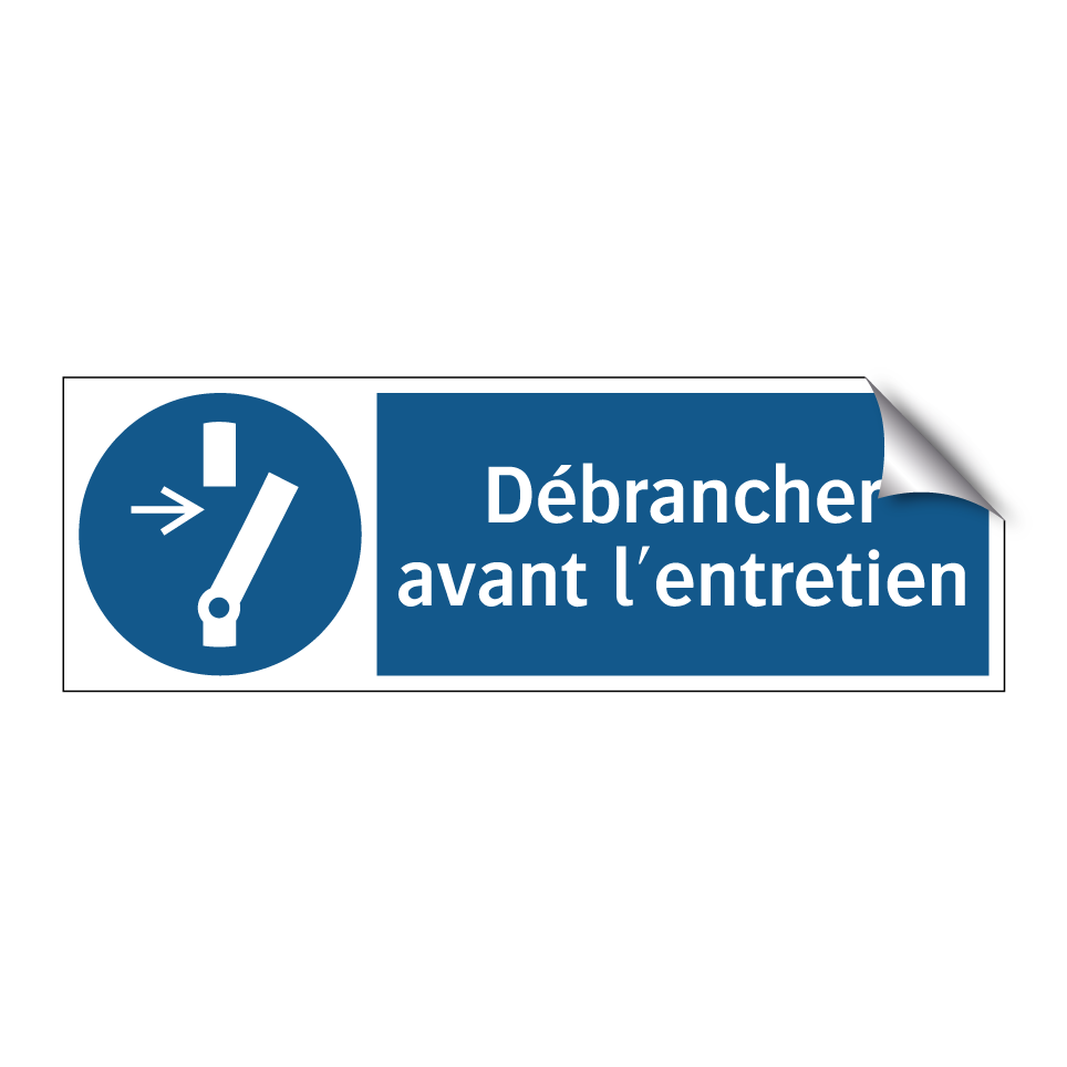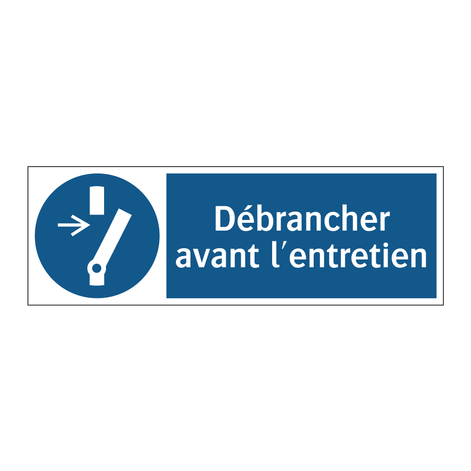 Panneau d'obligation avec le texte : "Débrancher avant l'entretien"