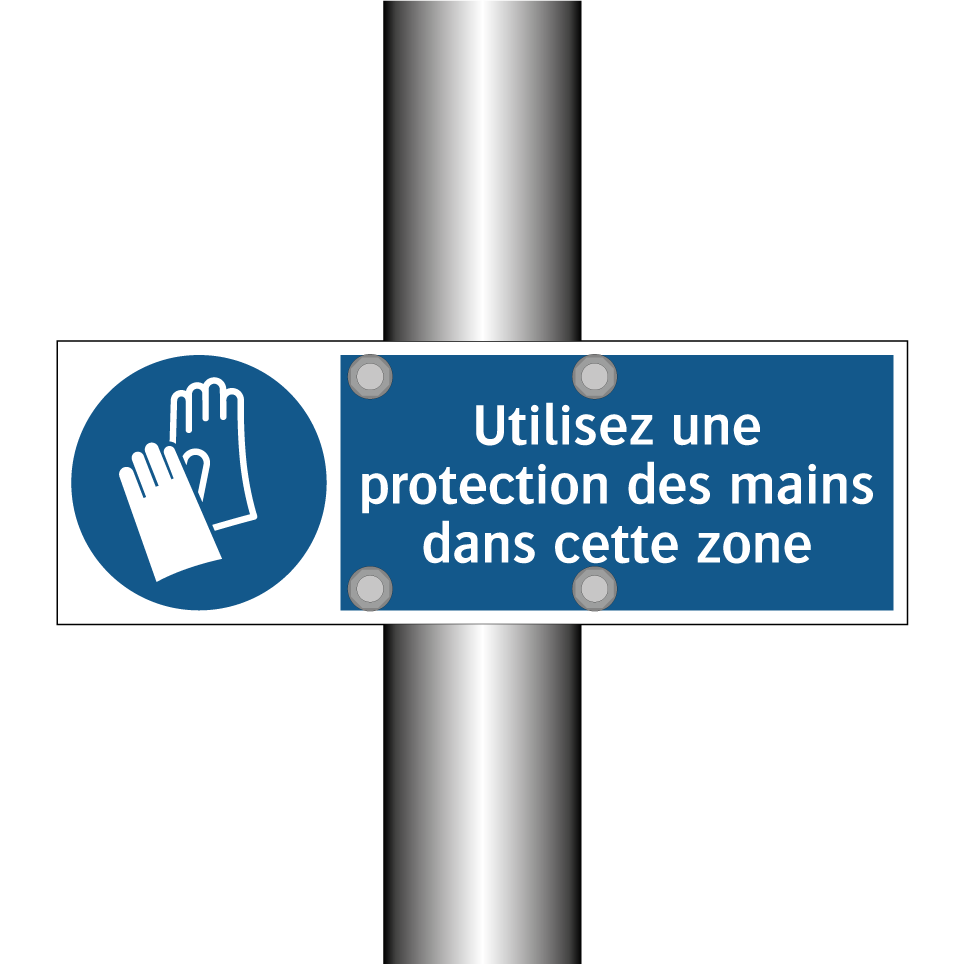 Panneau d'obligation avec le texte : "Utilisez une protection des mains dans cette zone"