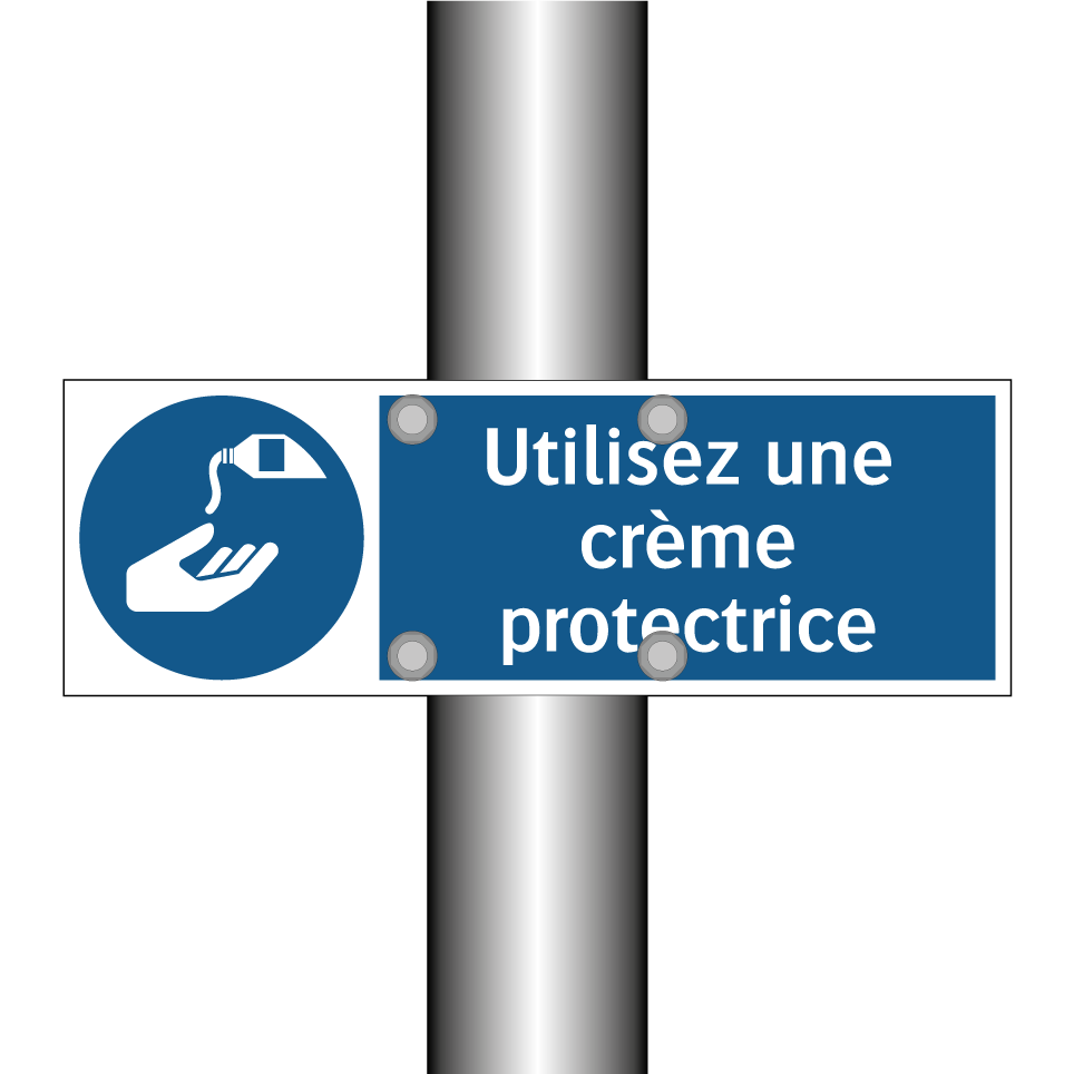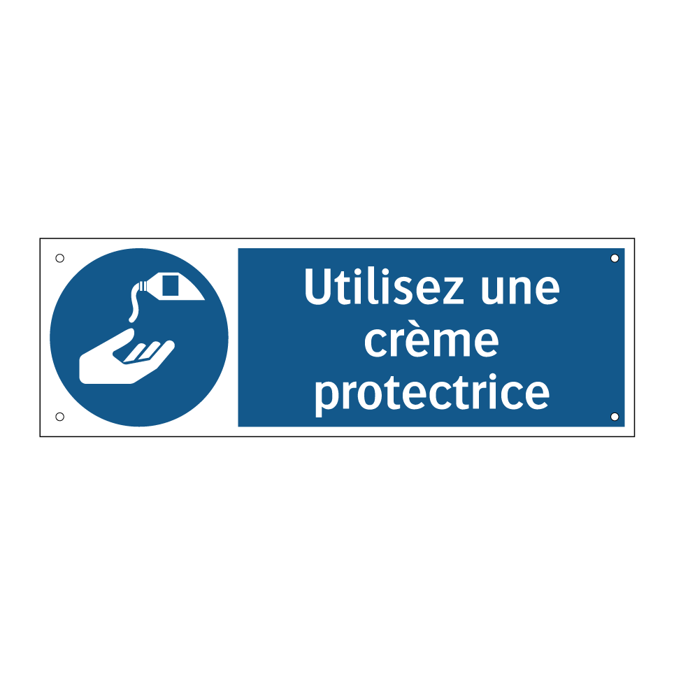 Panneau d'obligation avec le texte : "Utilisez une crème protectrice"