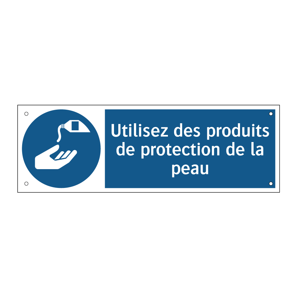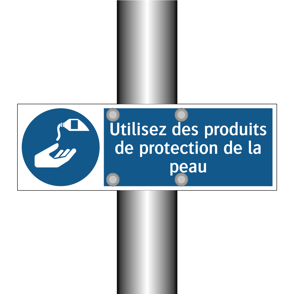 Panneau d'obligation avec le texte : "Utilisez des produits de protection de la peau"