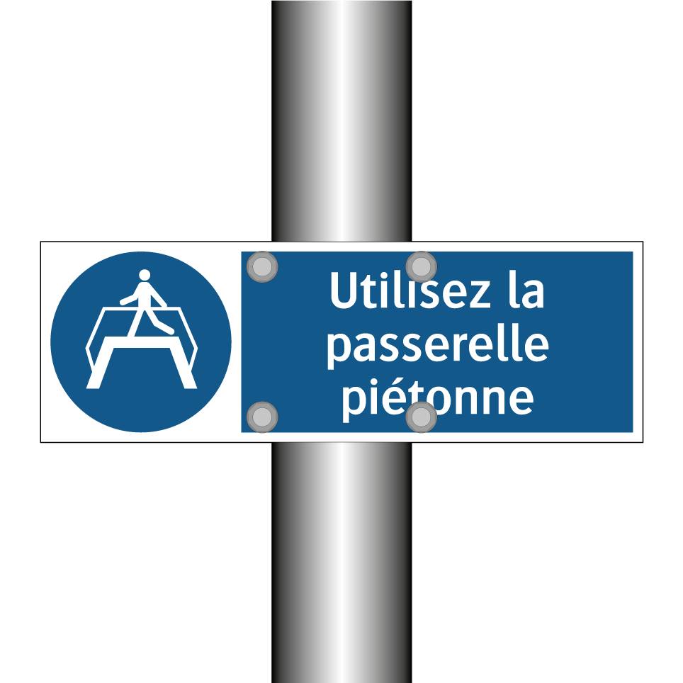 Panneau d'obligation avec le texte : "Utilisez la passerelle piétonne"