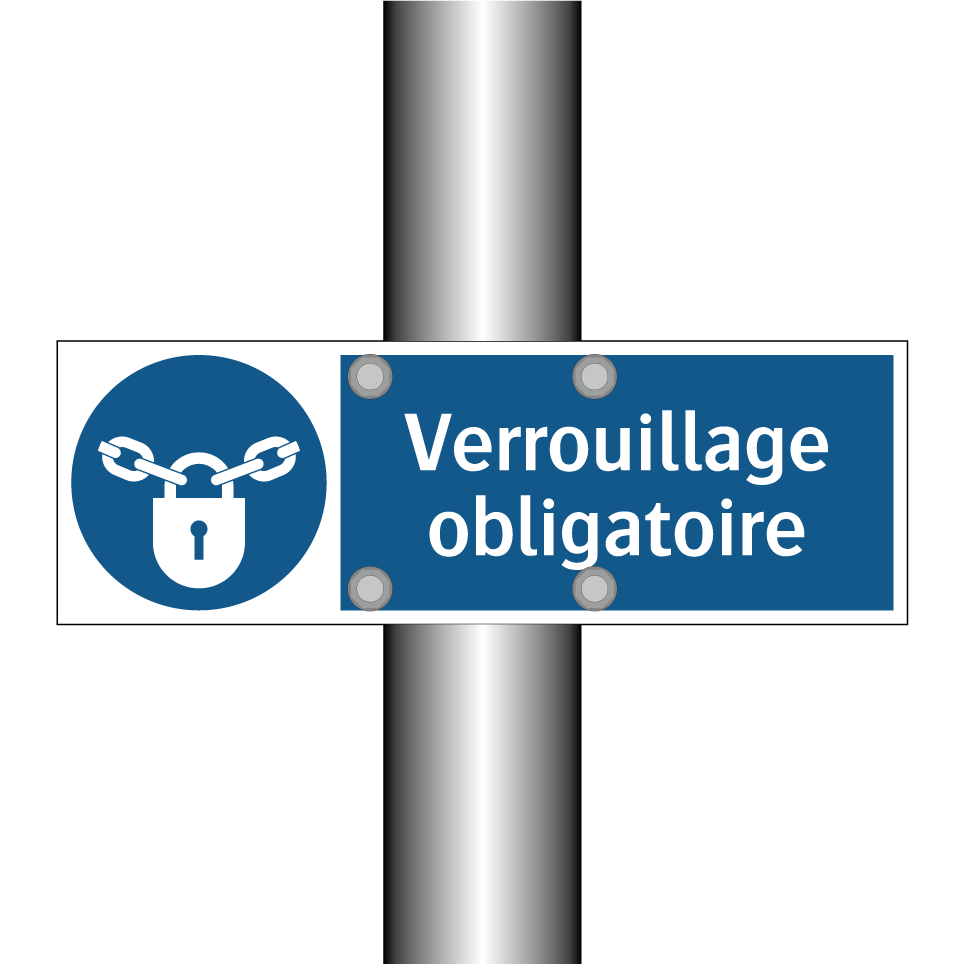 Panneau d'obligation avec le texte : "Verrouillage obligatoire"