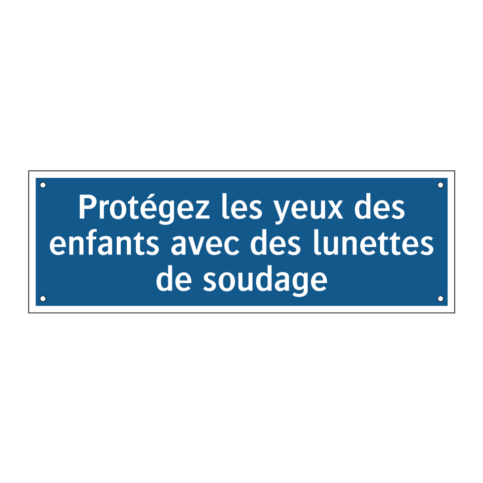 Panneau d'obligation avec le texte : "Protégez les yeux des enfants avec des lunettes de soudage"