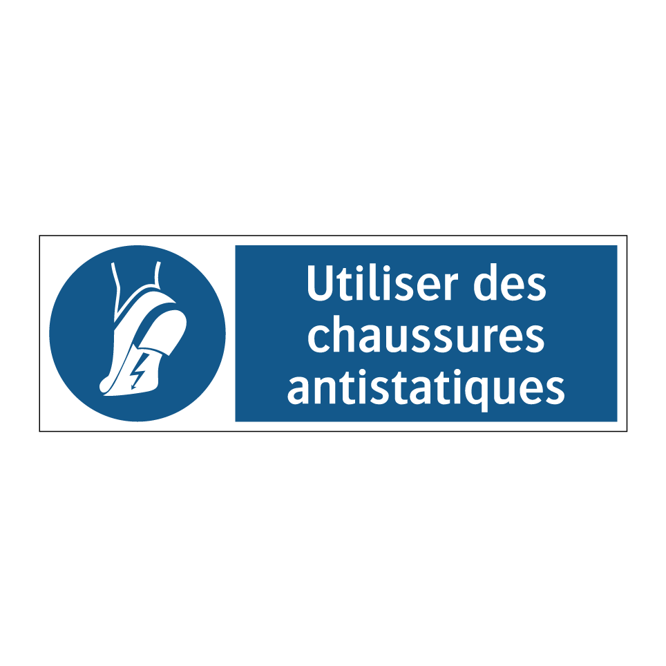 Panneau d'obligation avec le texte : "Utiliser des chaussures antistatiques"