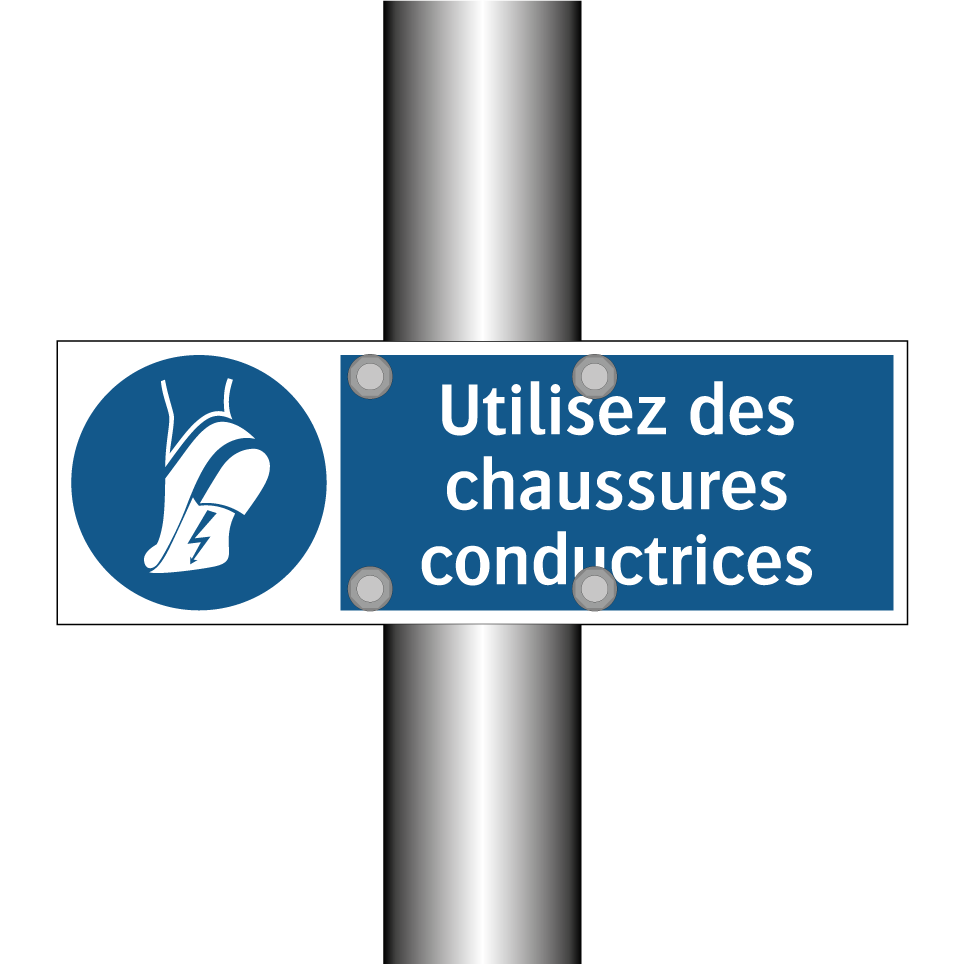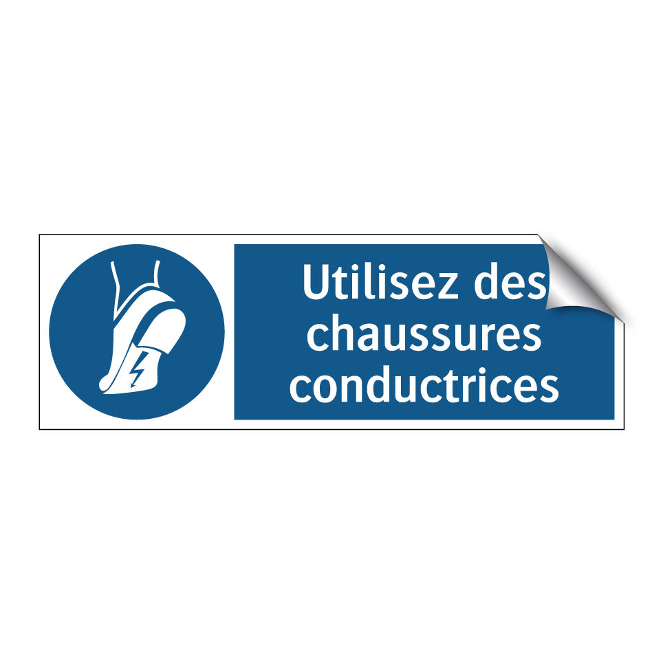 Panneau d'obligation avec le texte : "Utilisez des chaussures conductrices"