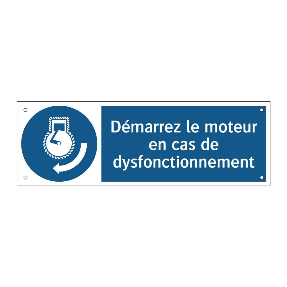 Panneau d'obligation avec le texte : "Démarrez le moteur en cas de dysfonctionnement"