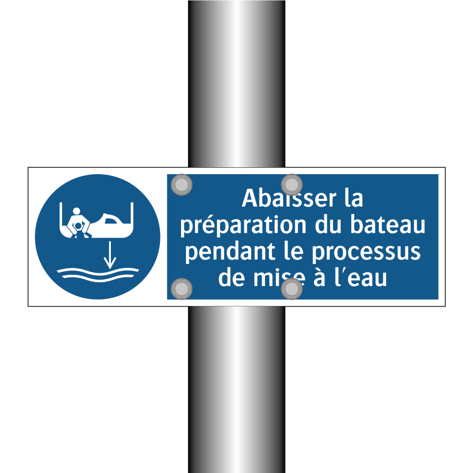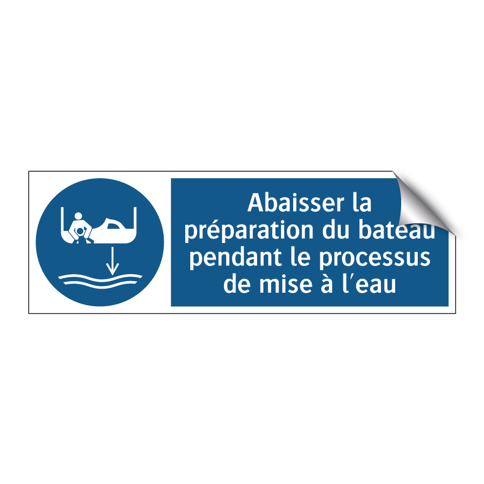 Panneau d'obligation avec le texte : "Abaisser la préparation du bateau pendant le processus de mise à l'eau"