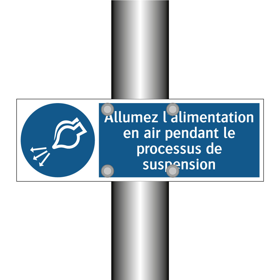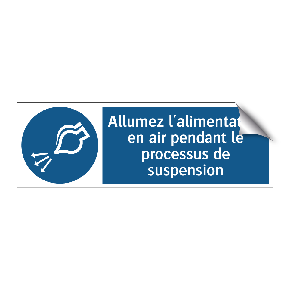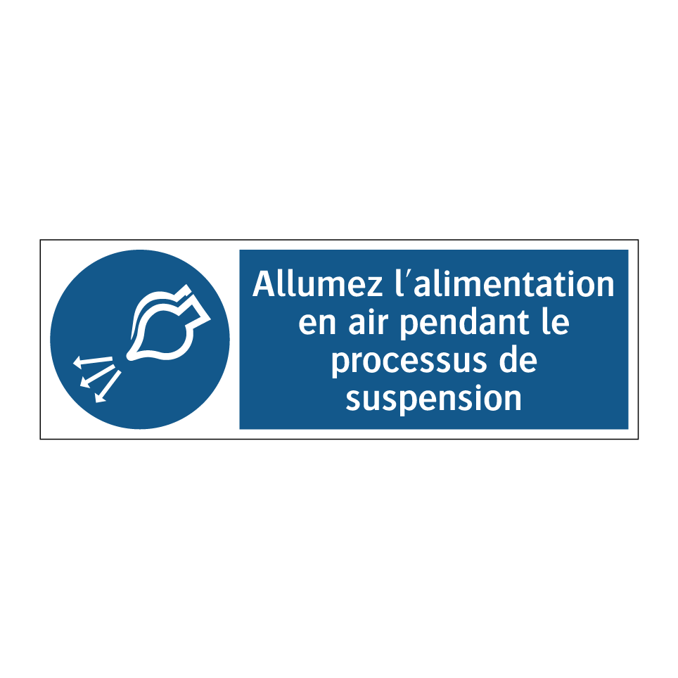 Panneau d'obligation avec le texte : "Allumez l'alimentation en air pendant le processus de suspension"