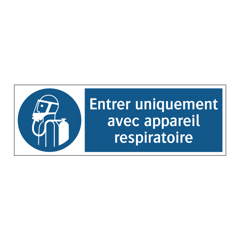 Panneau d'obligation avec le texte : "Entrer uniquement avec appareil respiratoire"
