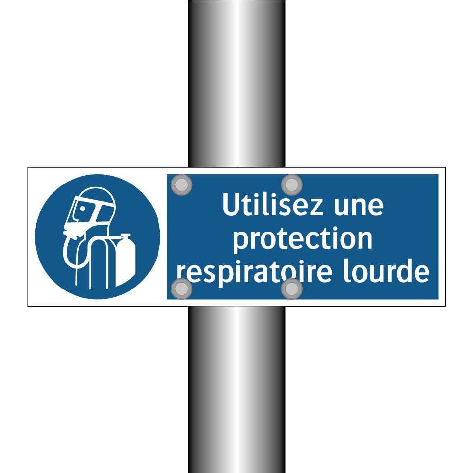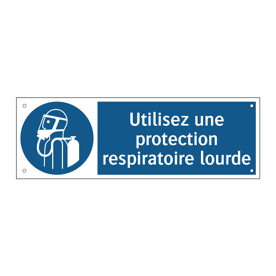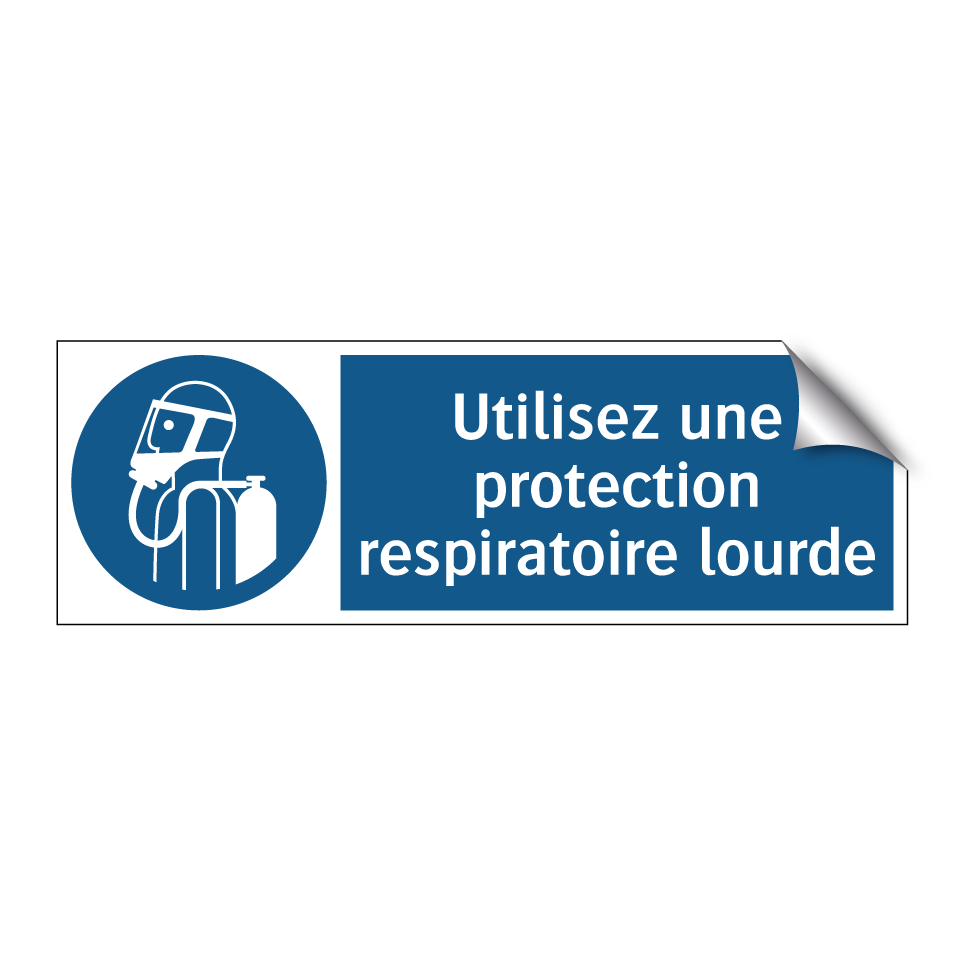 Panneau d'obligation avec le texte : "Utilisez une protection respiratoire lourde"