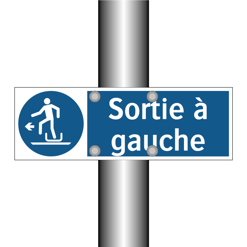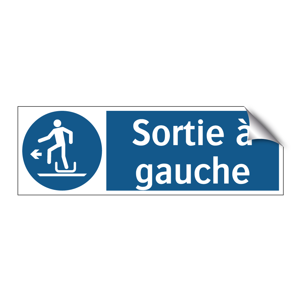 Panneau d'obligation avec le texte : "Sortie à gauche"