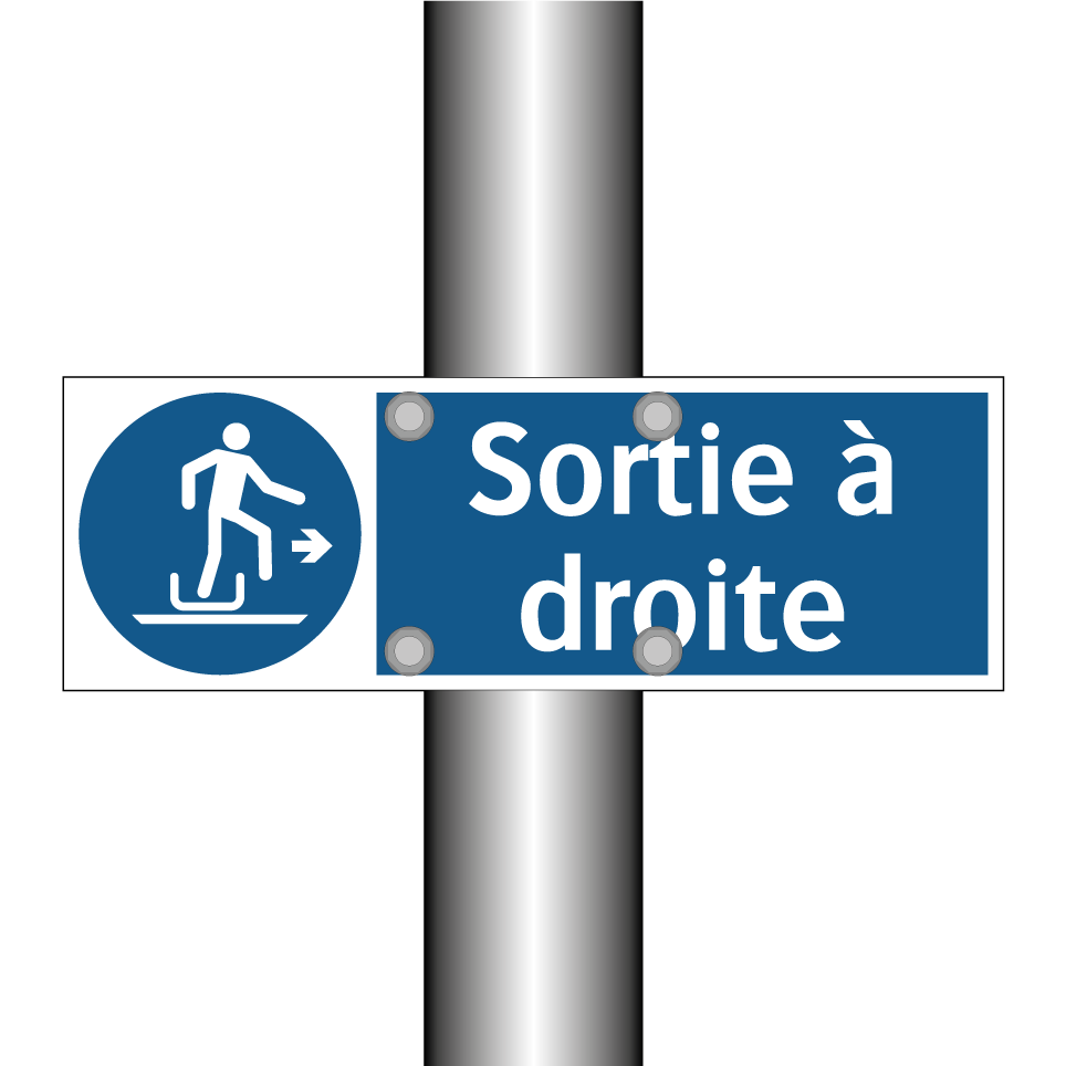 Panneau d'obligation avec le texte : "Sortie à droite"
