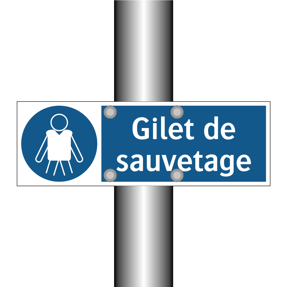 Panneau d'obligation avec le texte : "Gilet de sauvetage"