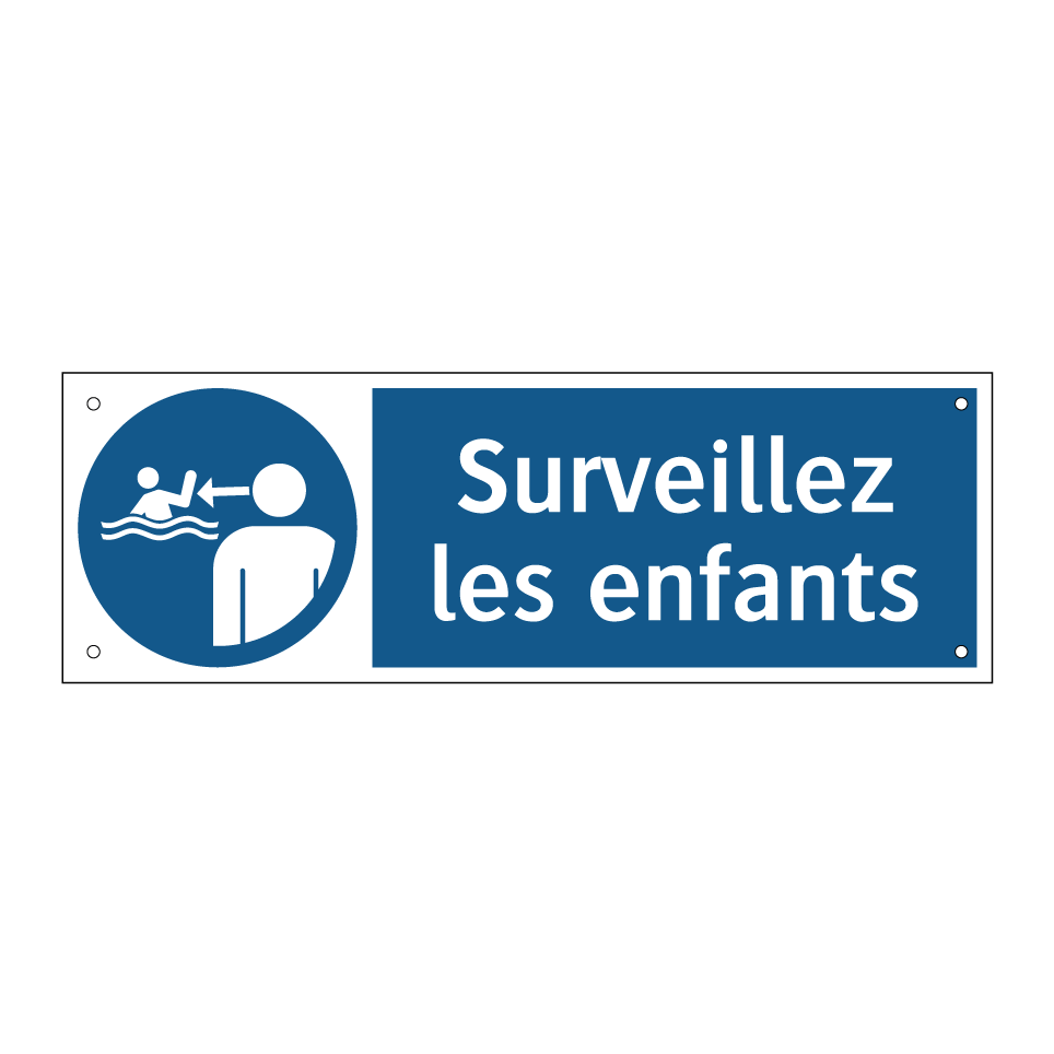 Panneau d'obligation avec le texte : "Surveillez les enfants"