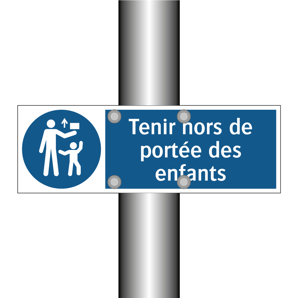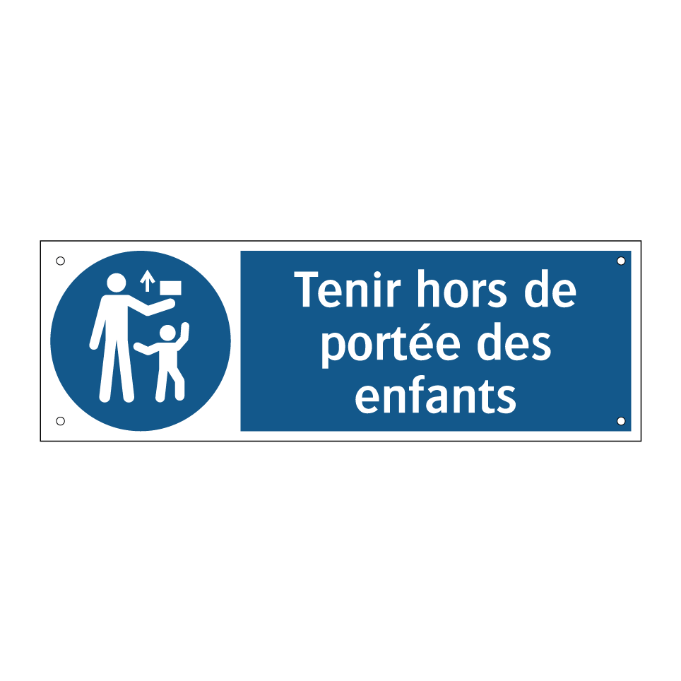 Panneau d'obligation avec le texte : "Tenir hors de portée des enfants"