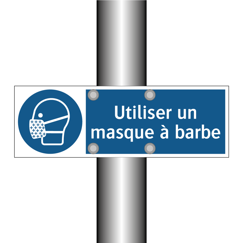 Panneau d'obligation avec le texte : "Utiliser un masque à barbe"