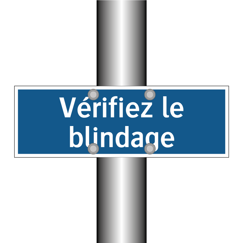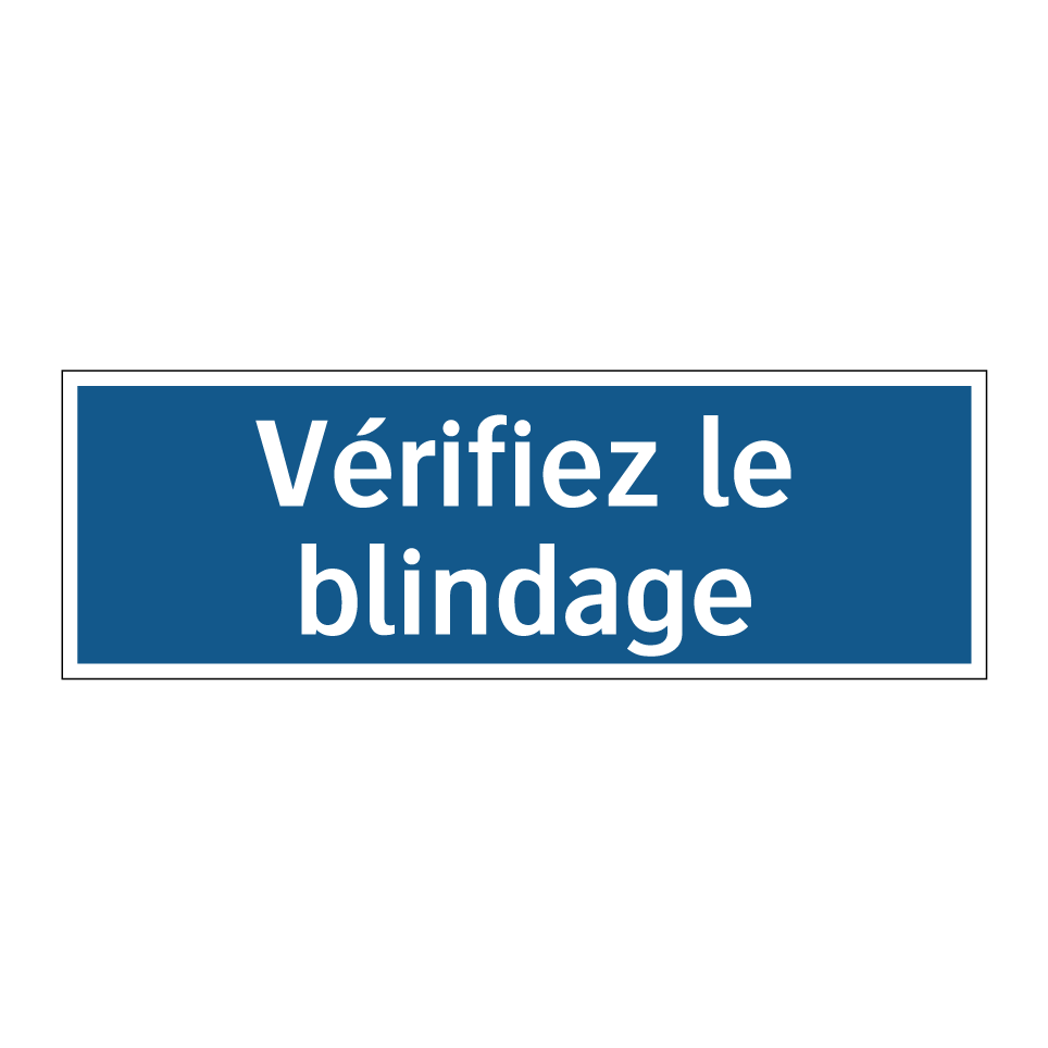 Panneau d'obligation avec le texte : "Vérifiez le blindage"