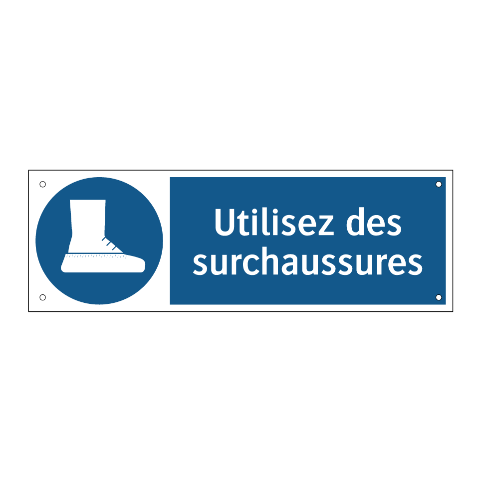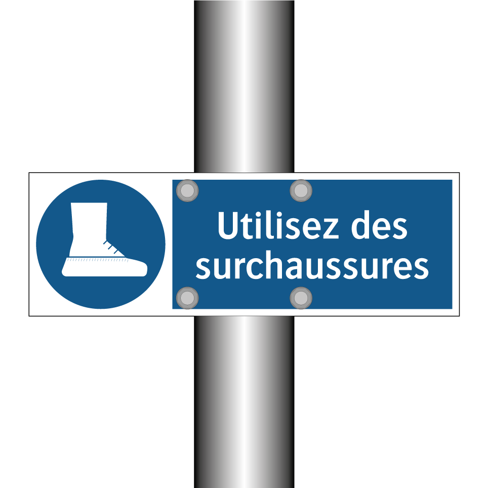 Panneau d'obligation avec le texte : "Utilisez des surchaussures"