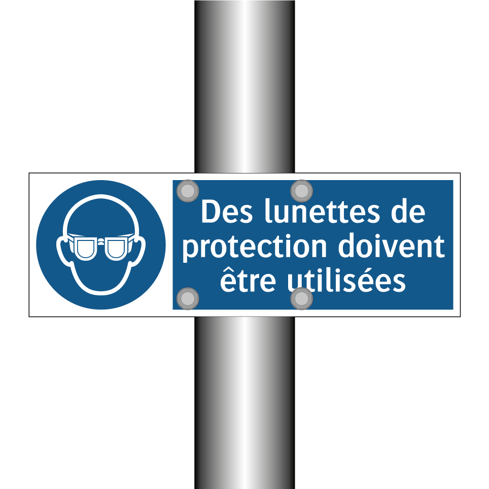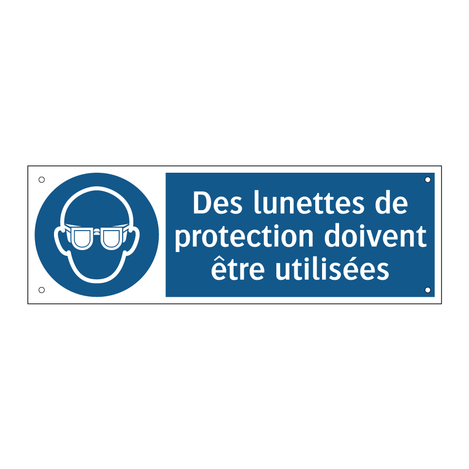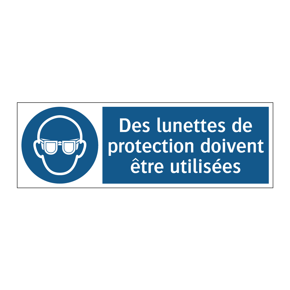 Panneau d'obligation avec le texte : "Des lunettes de protection doivent être utilisées"